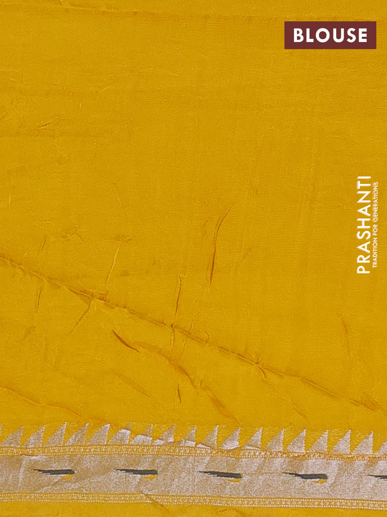 Banarasi semi raw silk saree yellow with allover silver zari woven paithani weaves and silver zari woven border