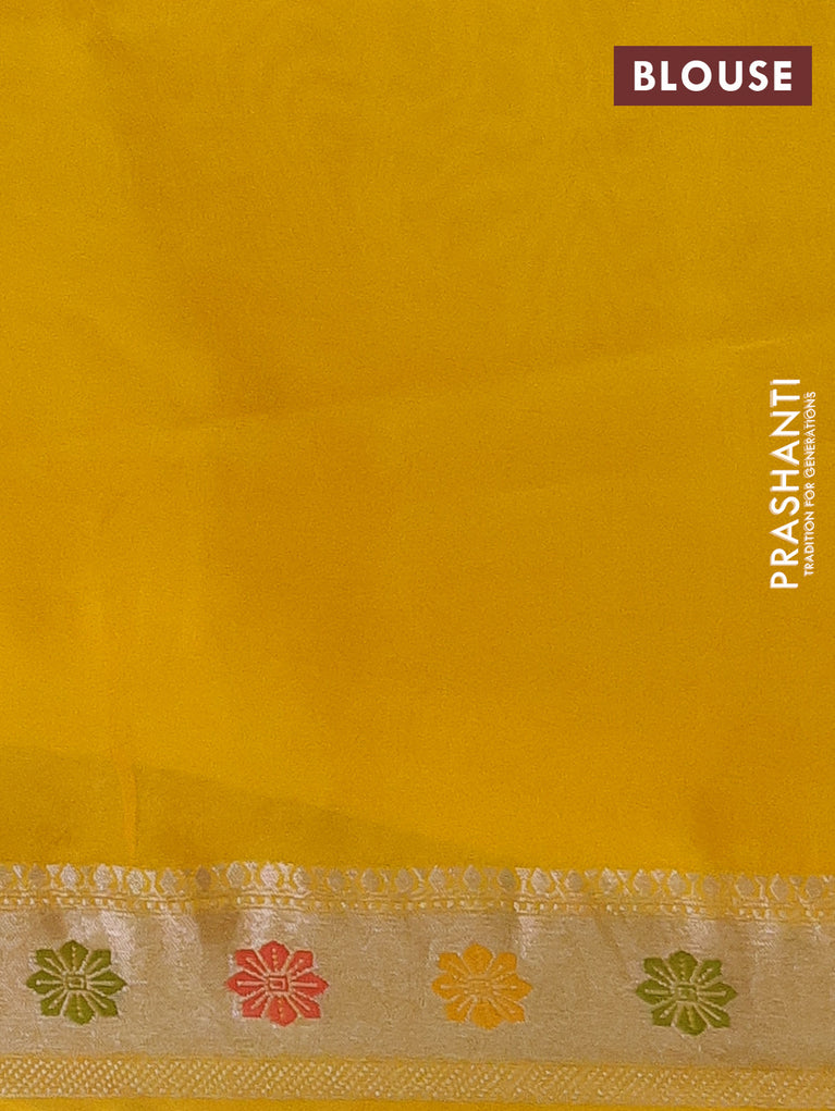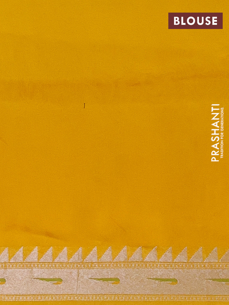 Banarasi semi raw silk saree yellow with allover zari woven brocade weaves and floral design paithani border