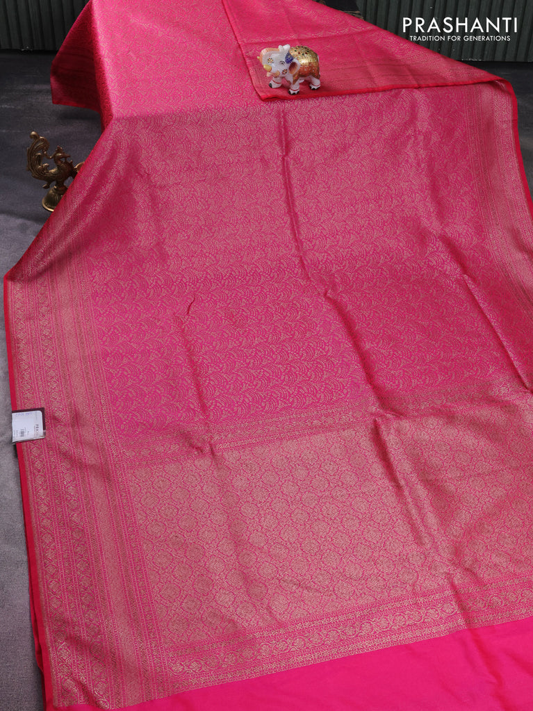 Banarasi semi silk saree pink and violet with allover thread & zari weaves and woven border