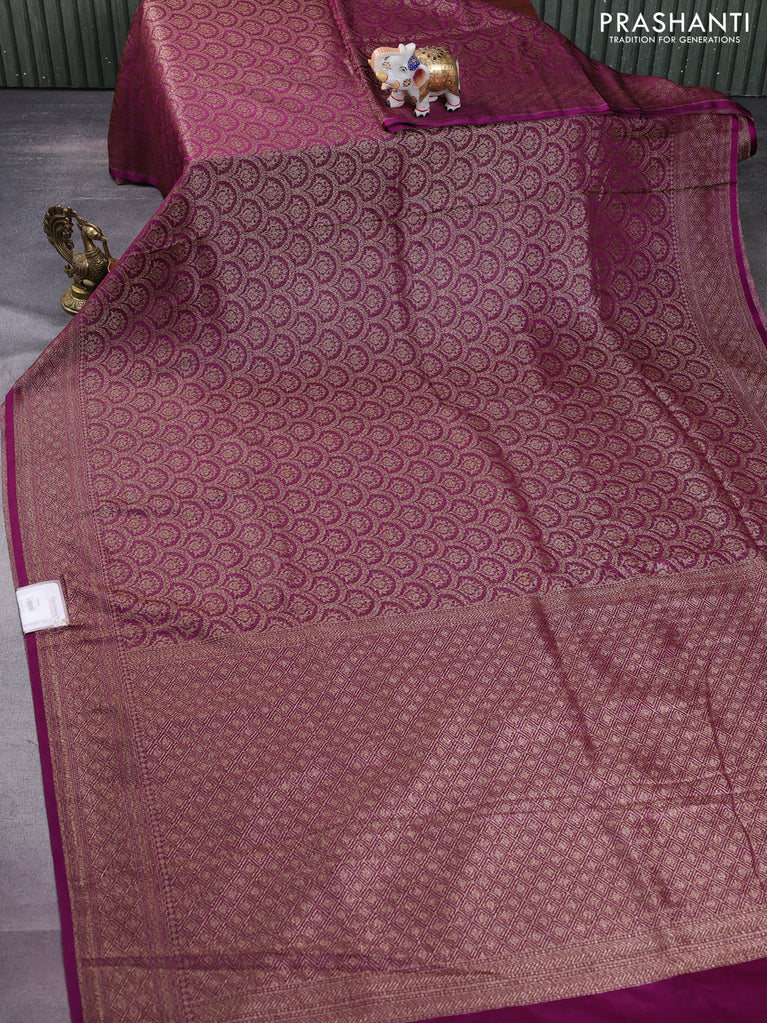 Banarasi semi silk saree purple with allover thread & zari weaves and woven border