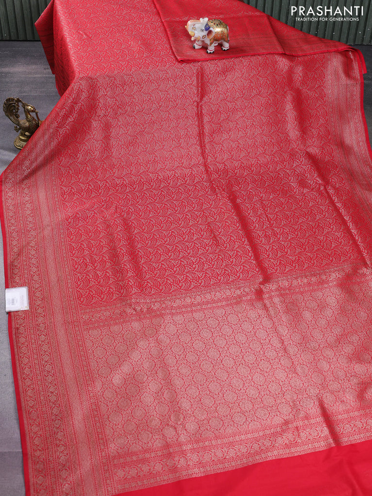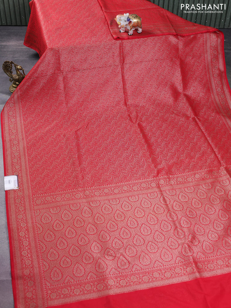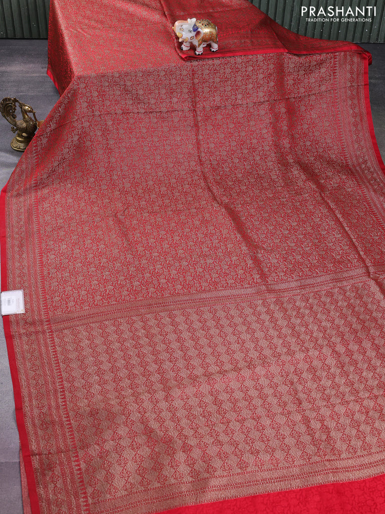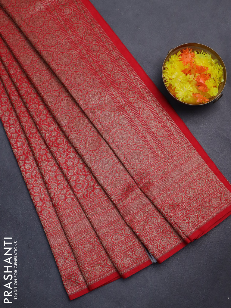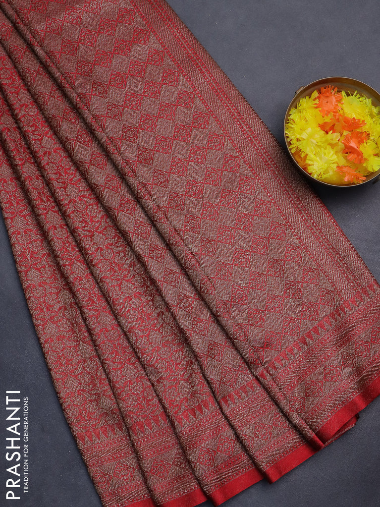 Banarasi semi silk saree red with allover thread & zari weaves and woven border