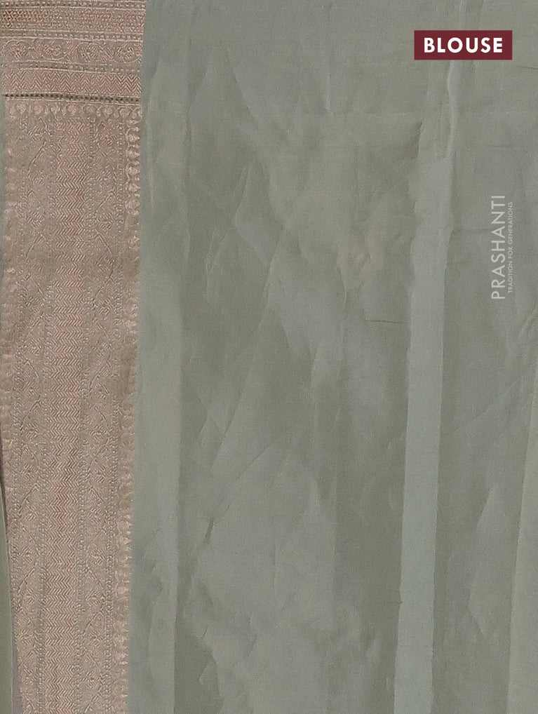 Banarasi tissue silk saree greyish green with allover silver & gold zari weaves and zari woven border