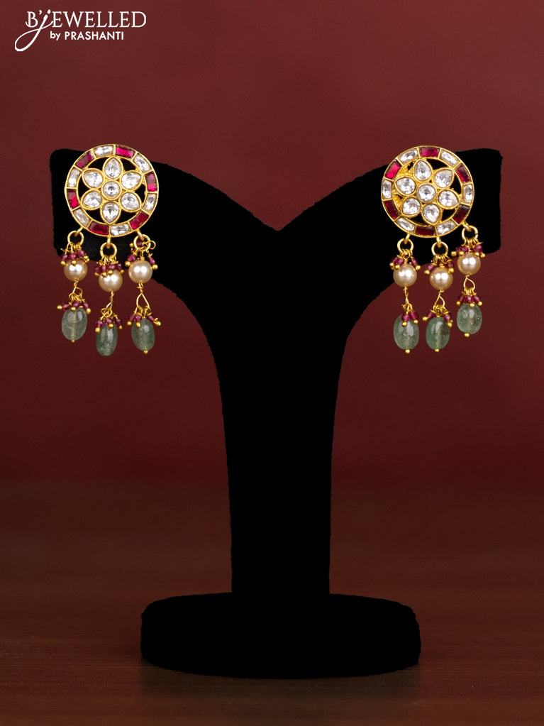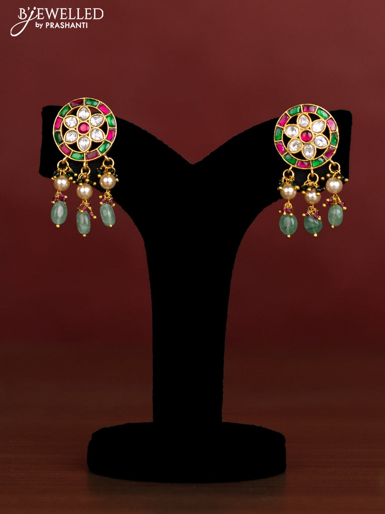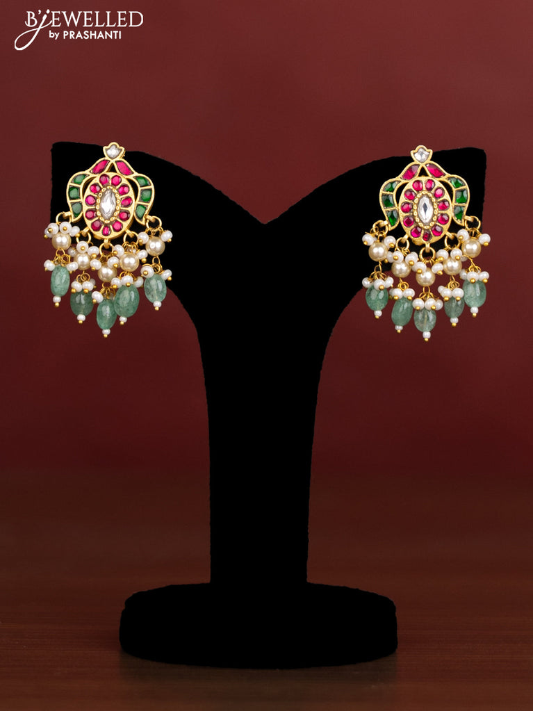 Antique beaded necklace lakshmi & chandbali reversible pendant with kemp stones and pearl & green beads hanging