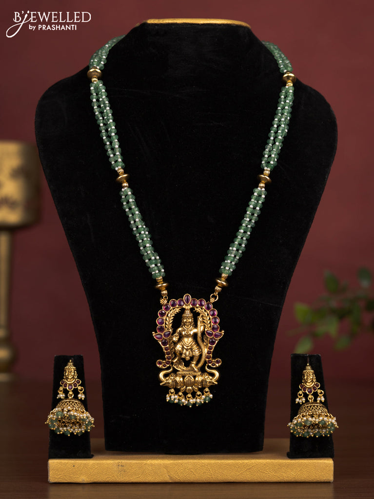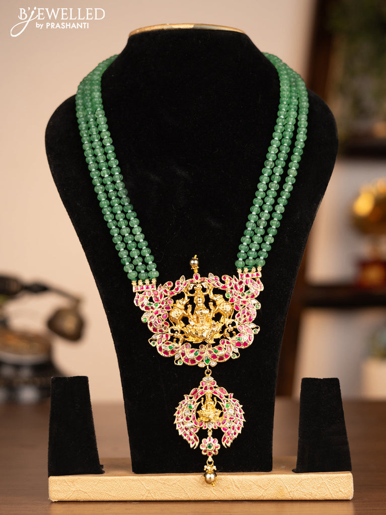 Antique beaded haaram lakshmi pendant with kemp stones and pearl & green beads hanging