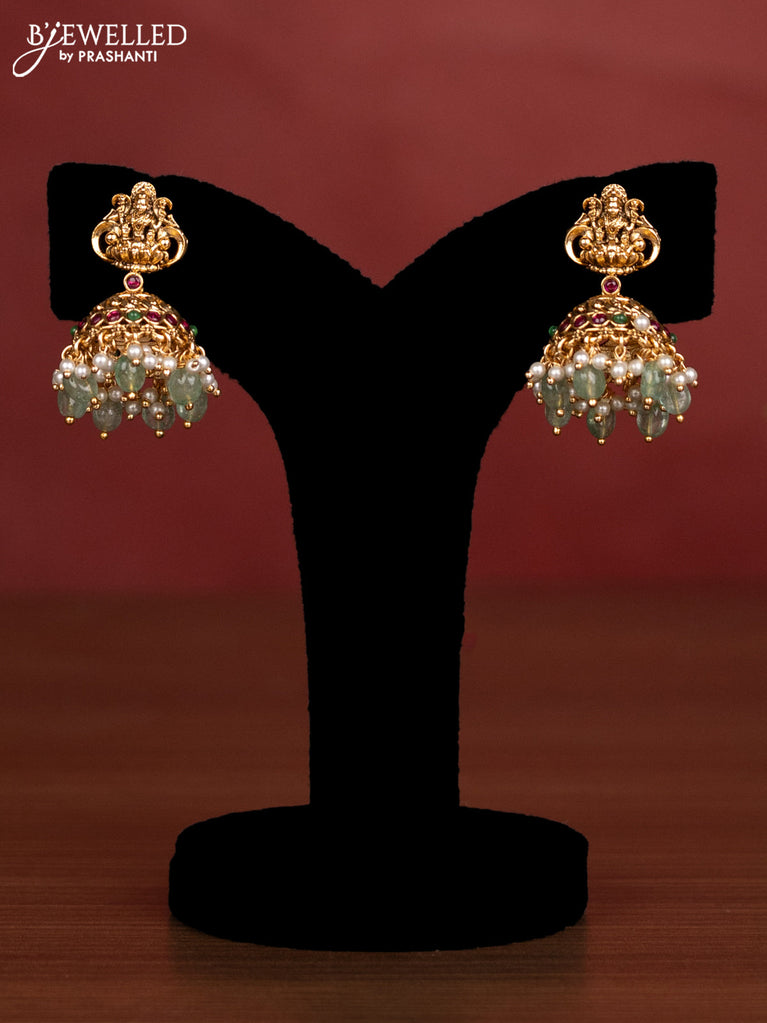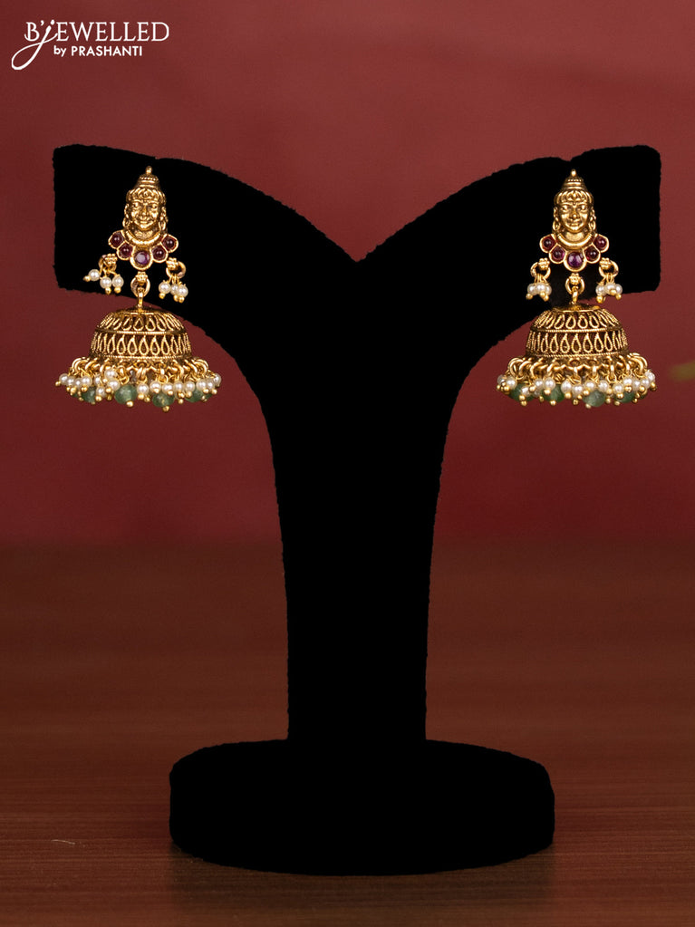 Antique big size jhumka lakshmi design with kemp & cz stones and pearl hangings