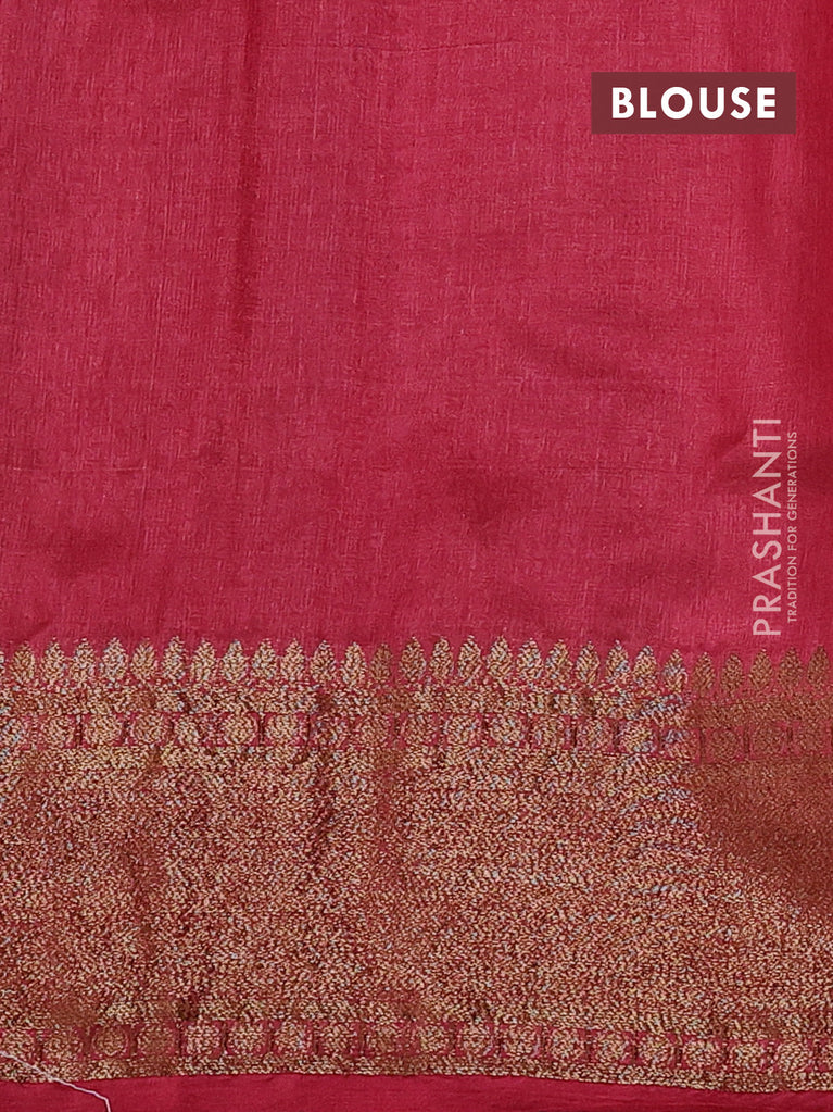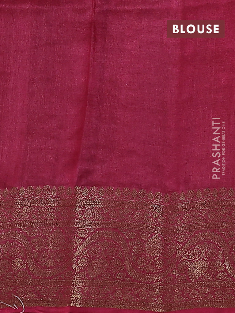 Banarasi tussar silk saree green and maroon with thread & zari woven floral buttas and woven border