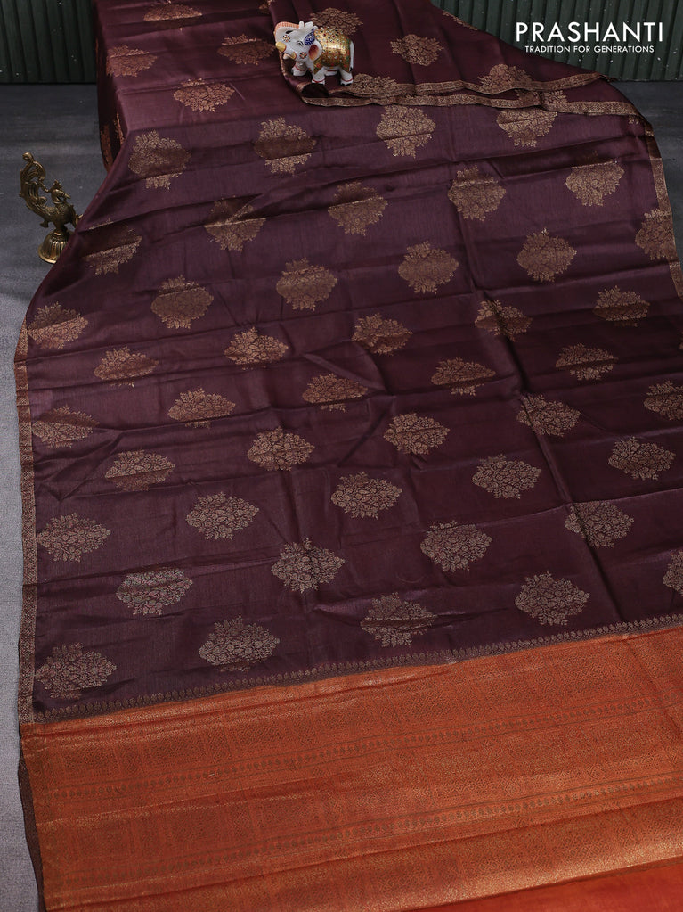 Banarasi tussar silk saree coffee brown and rust shade with thread & zari woven floral buttas and woven border