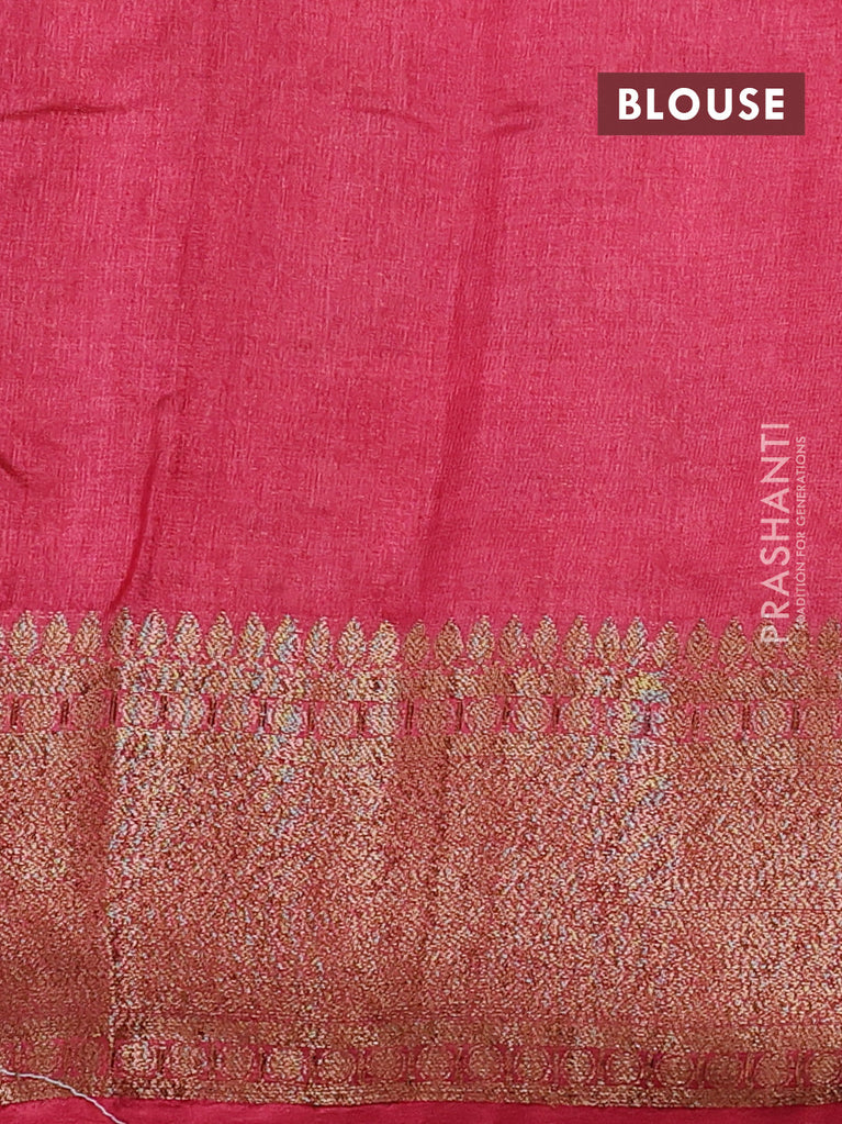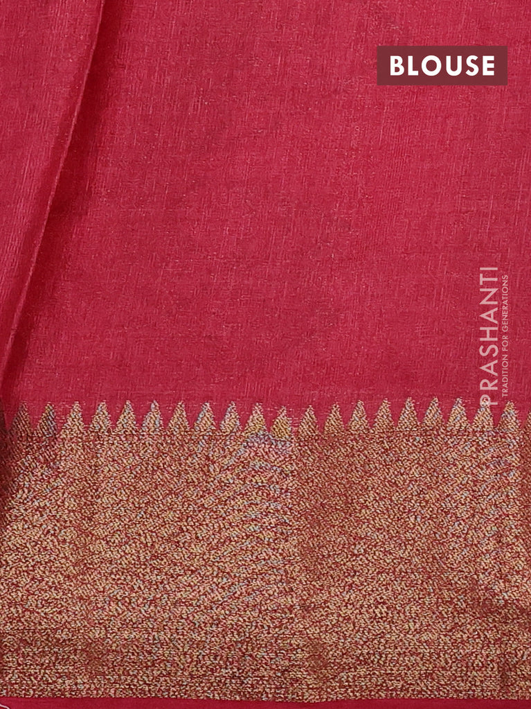 Banarasi tussar silk saree green and red with thread & zari woven buttas and woven border