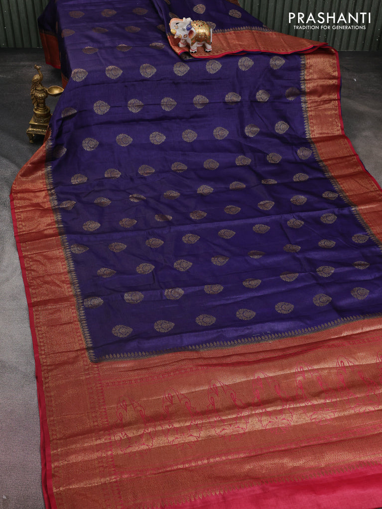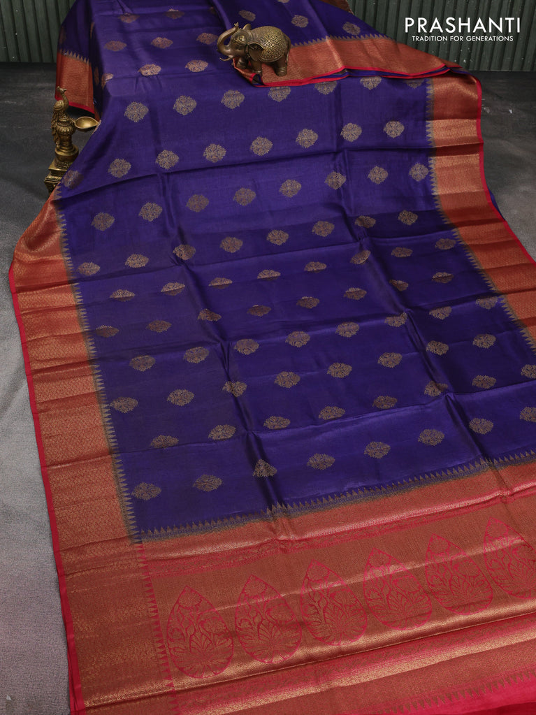 Banarasi tussar silk saree blue and maroon with thread & zari woven buttas and woven border