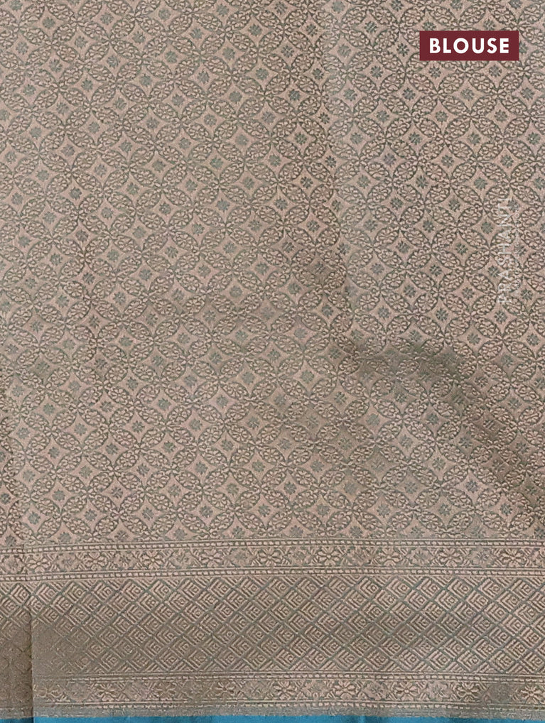 Banarasi tissue silk saree teal blue with allover zari woven brocade weaves and zari woven border