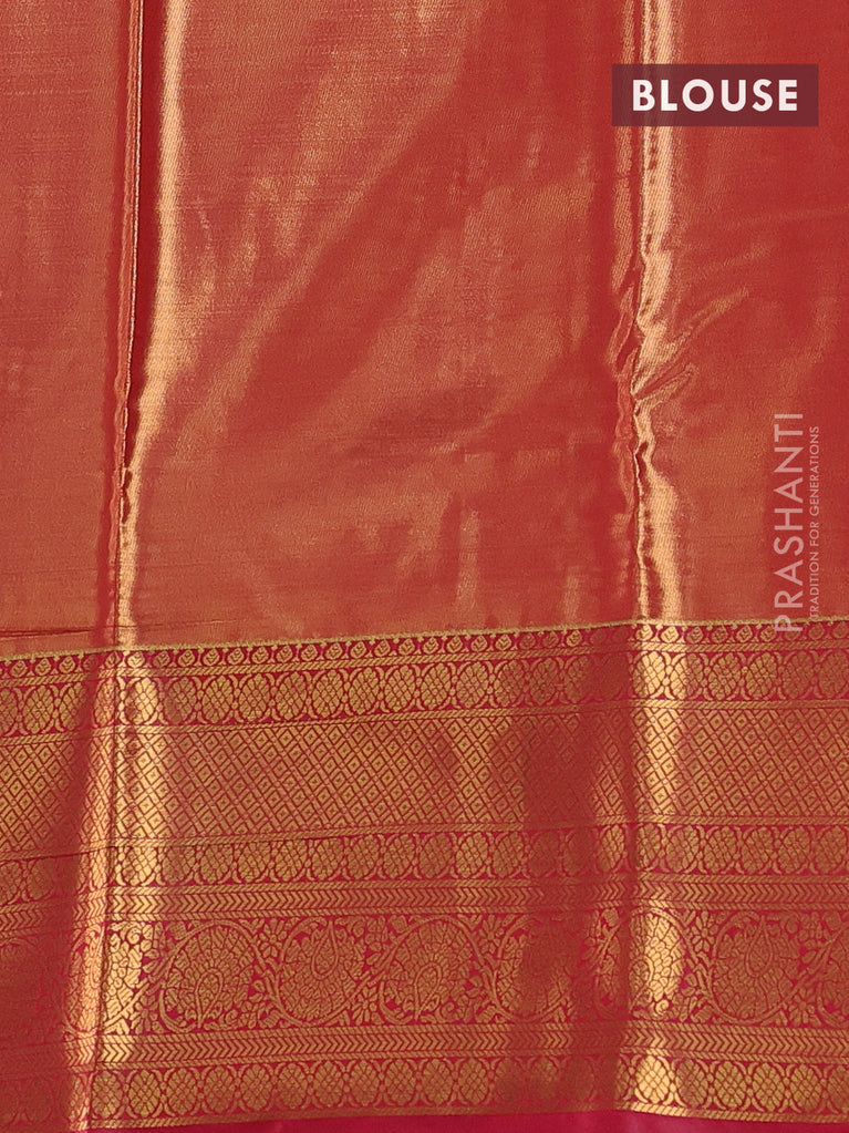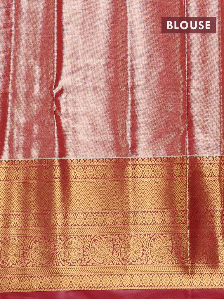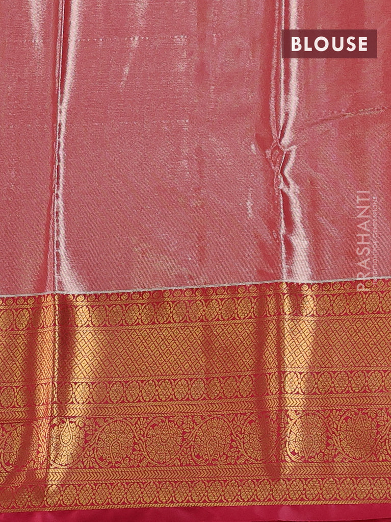 Bangalori tissue silk saree dual shade of mehendi green and reddish pink with allover zari woven brocade weaves and long zari woven border