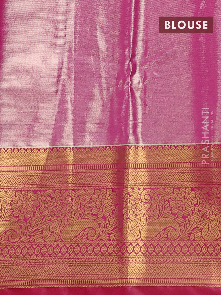 Bangalori tissue silk saree teal blue and reddish pink with allover zari woven brocade weaves and long zari woven border