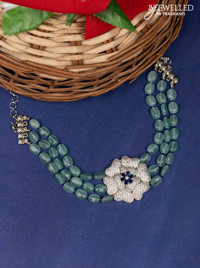 Beaded ice blue triple layer necklace peacock design with cz stones and beads hanging