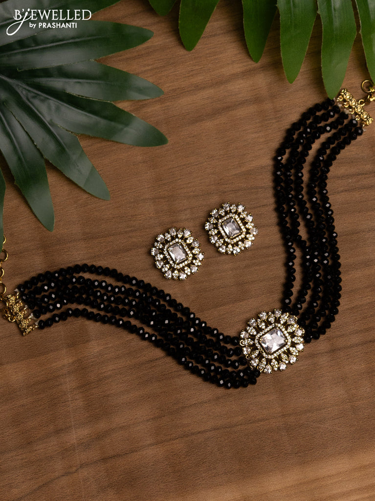 Beaded green choker with kundan & cz stones and beads hanging in victorian finish