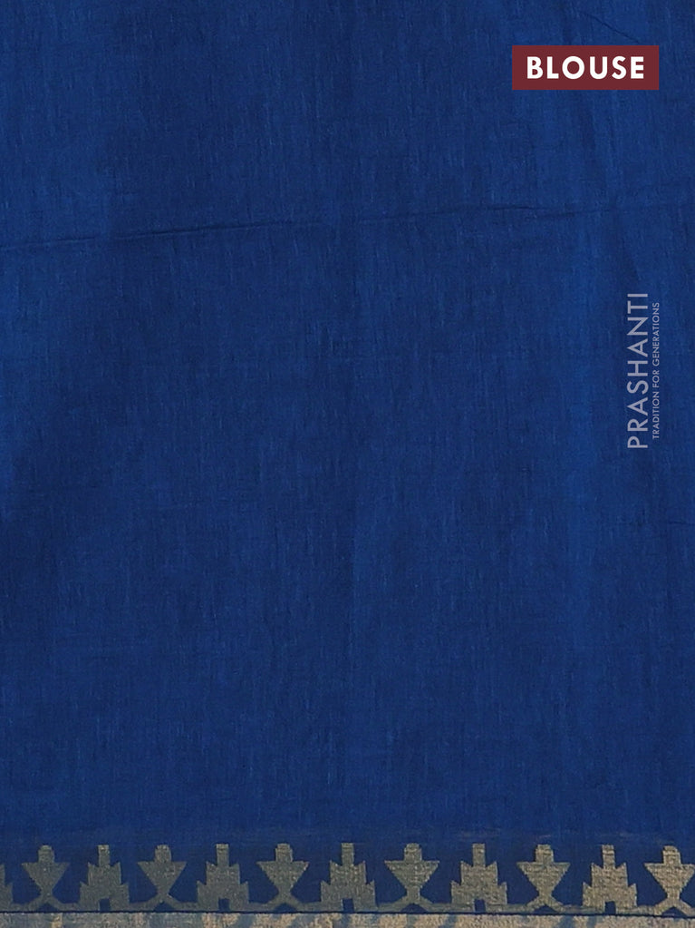 Bengal soft cotton saree cs blue with thread woven buttas and zari woven border