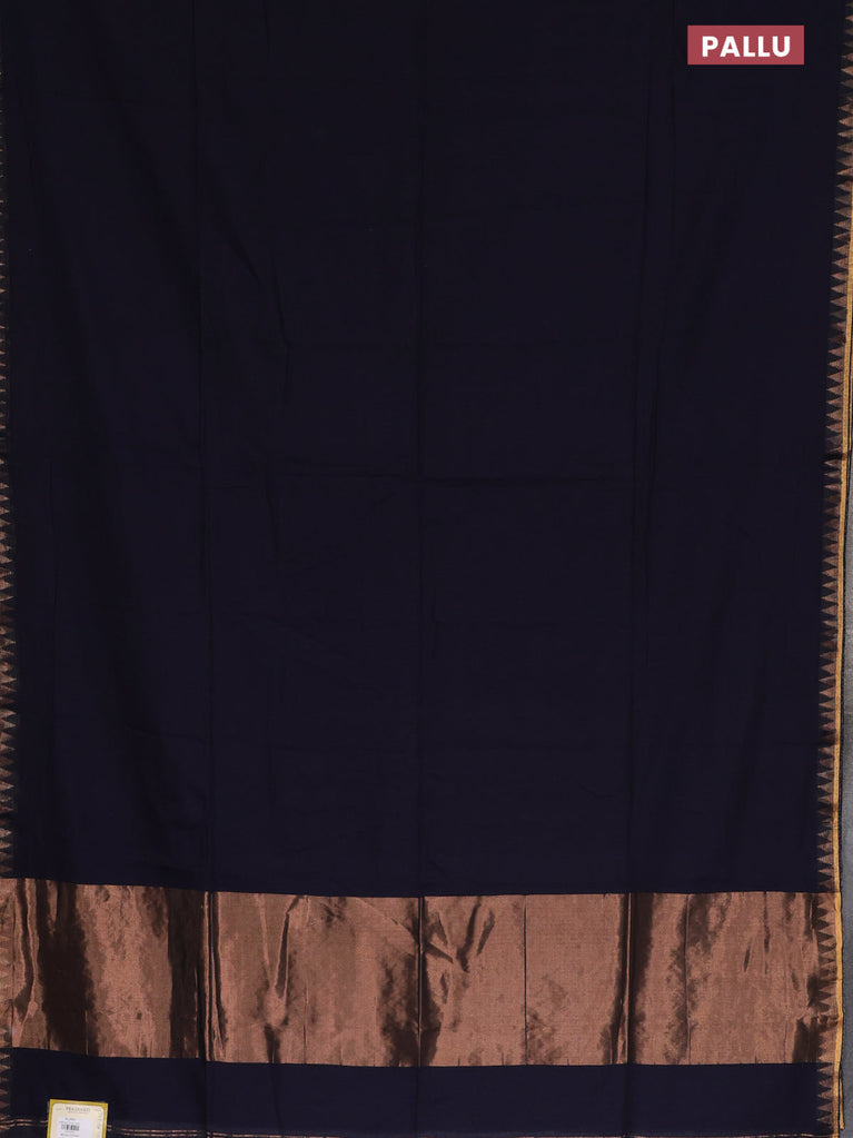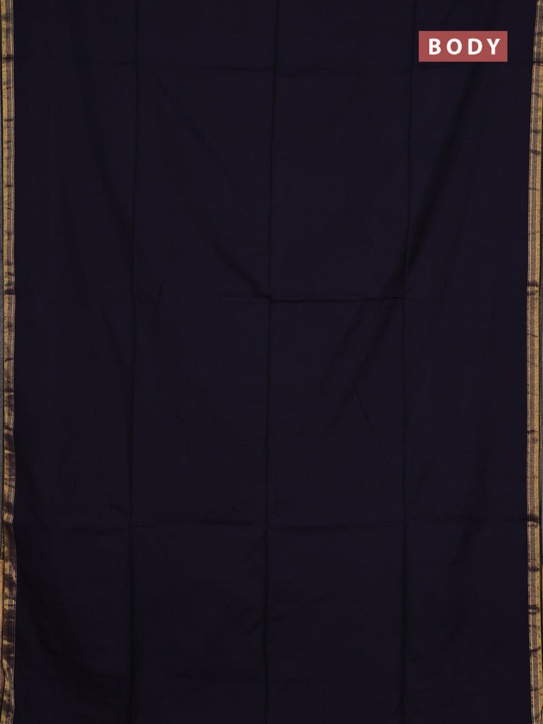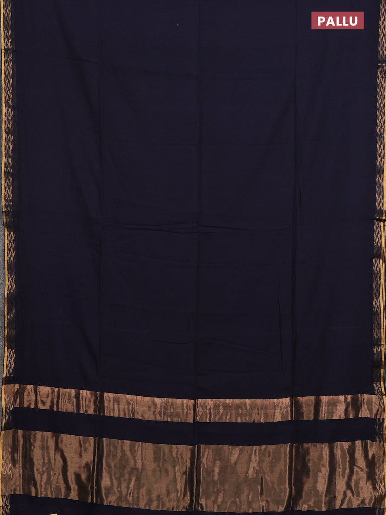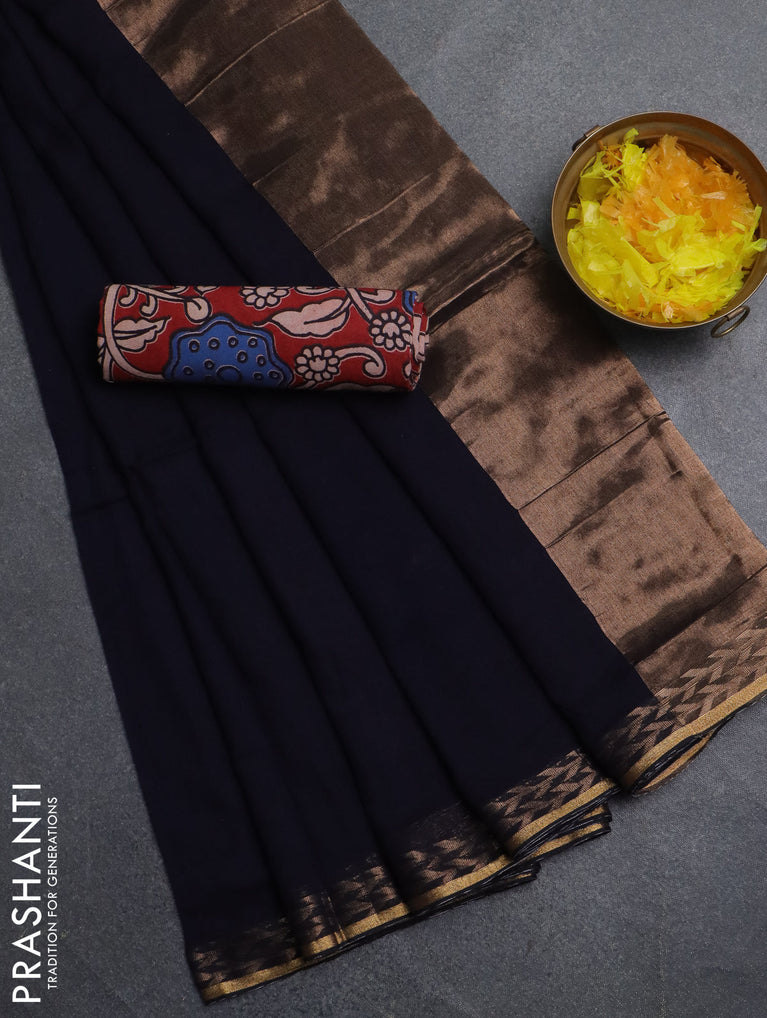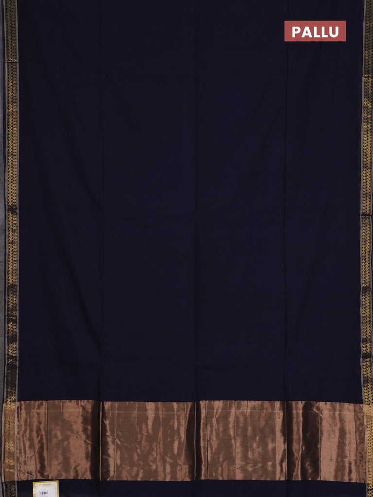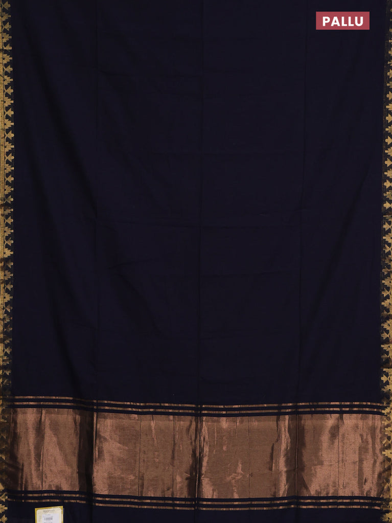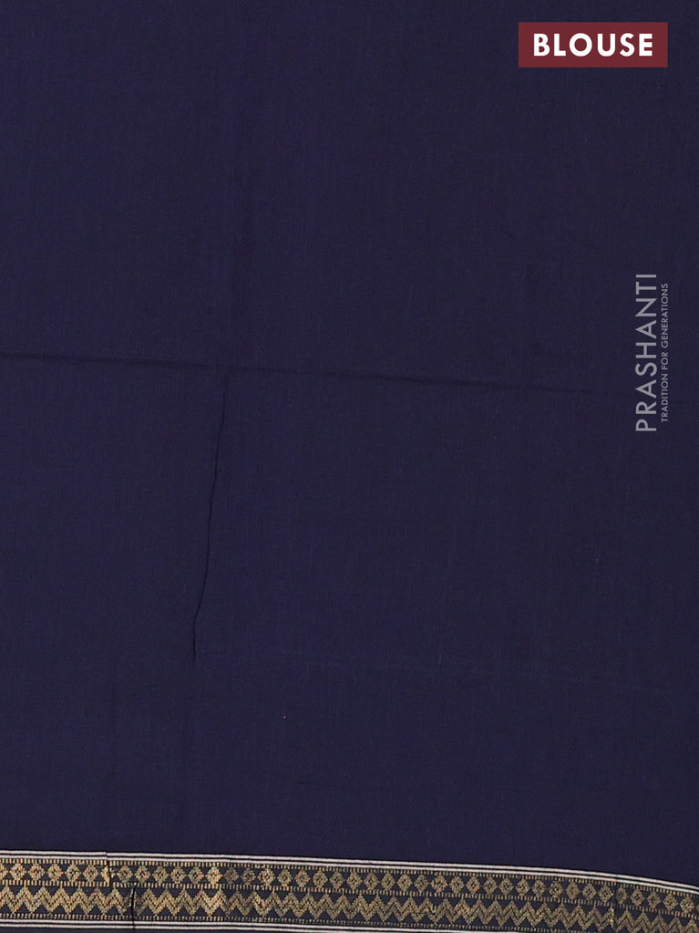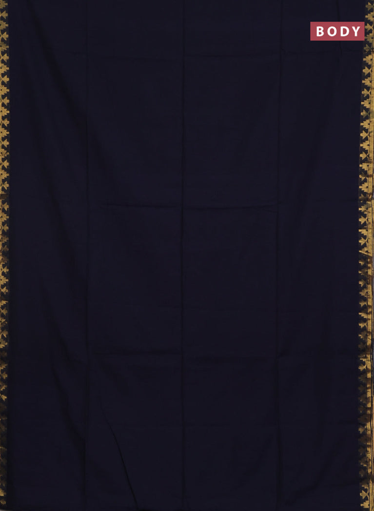 Bengal soft cotton saree navy blue with plain body and zari woven border