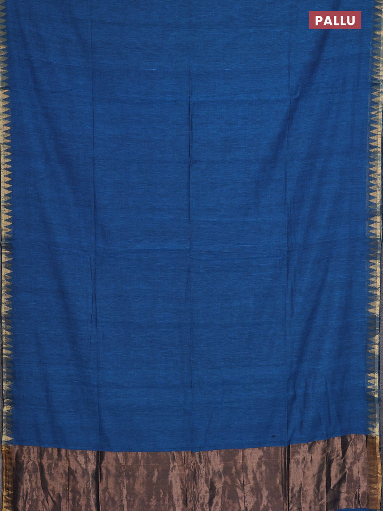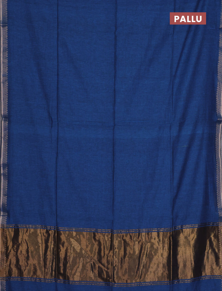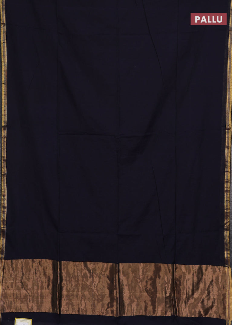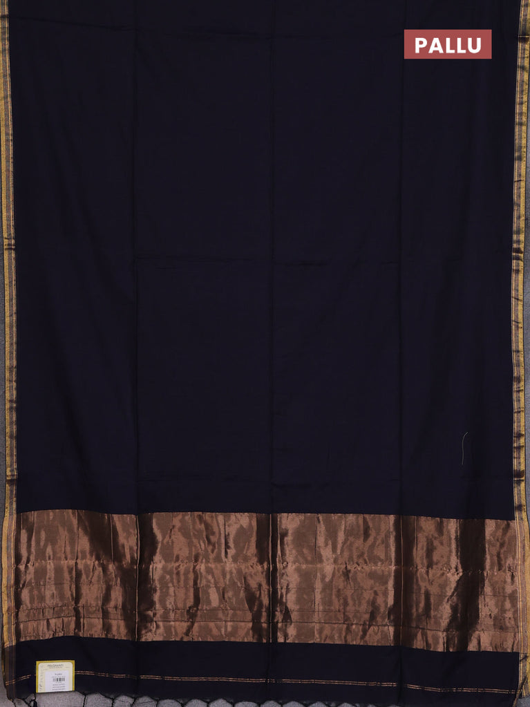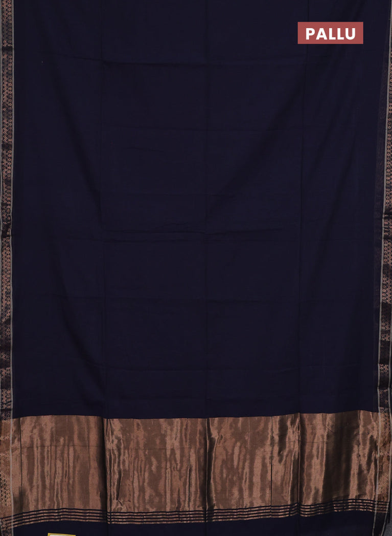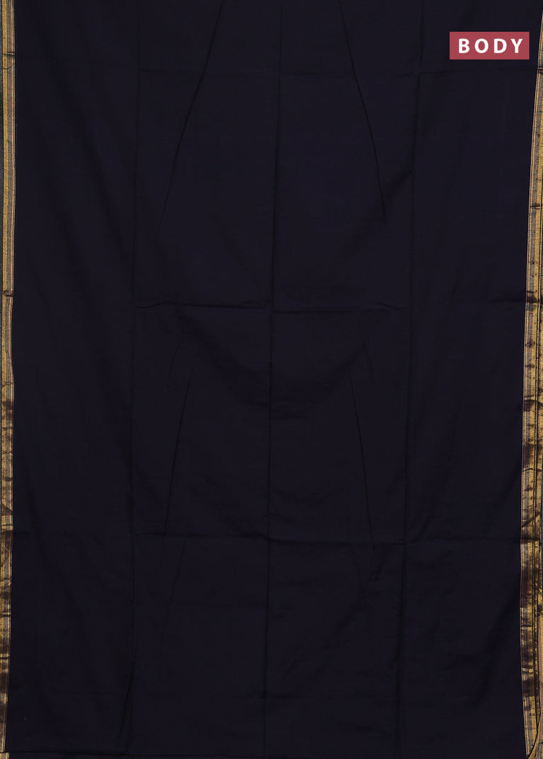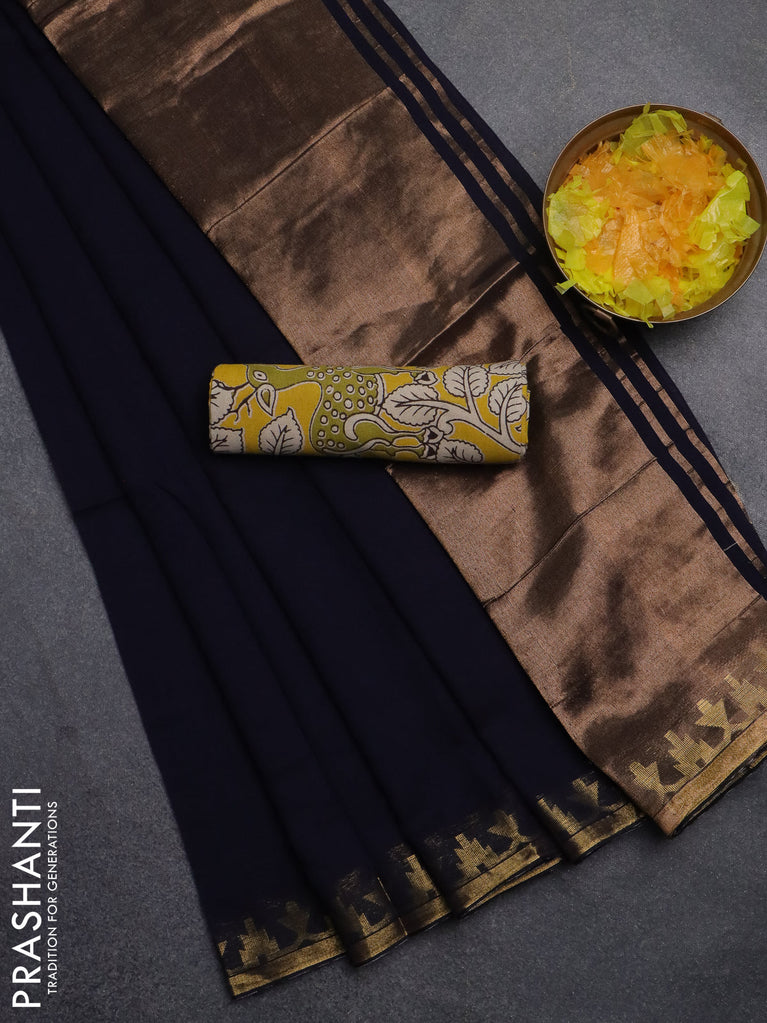 Bengal soft cotton saree navy blue with plain body and zari woven border