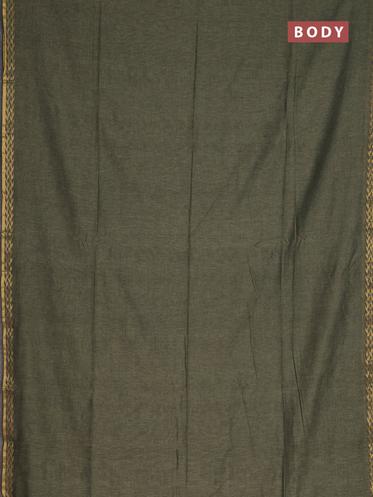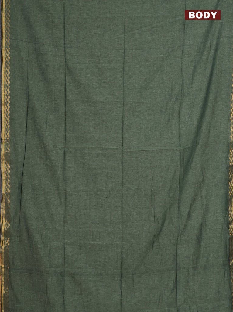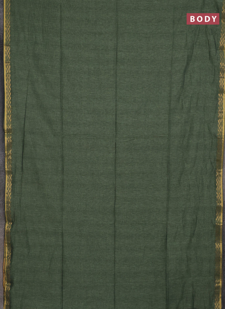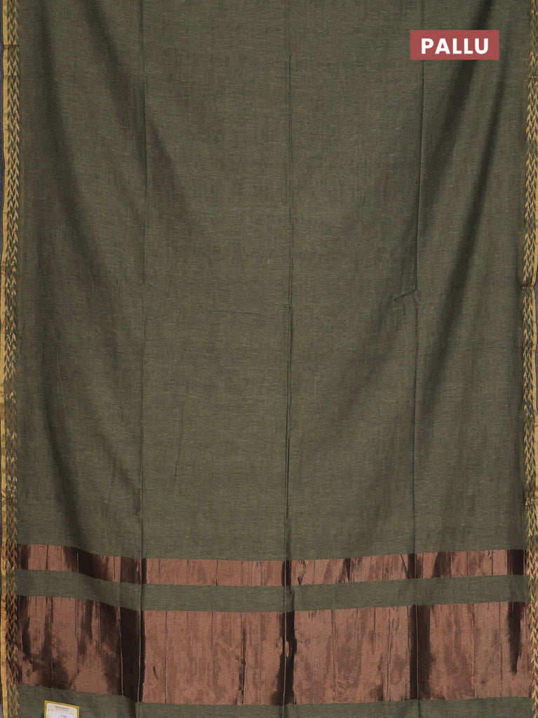 Bengal soft cotton saree navy blue and mehendi green with plain body and zari woven border