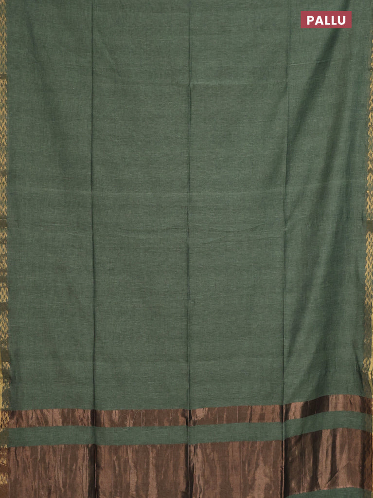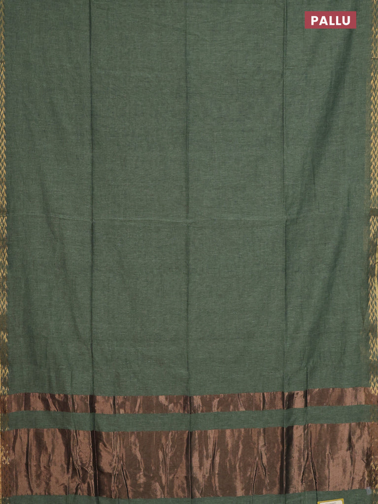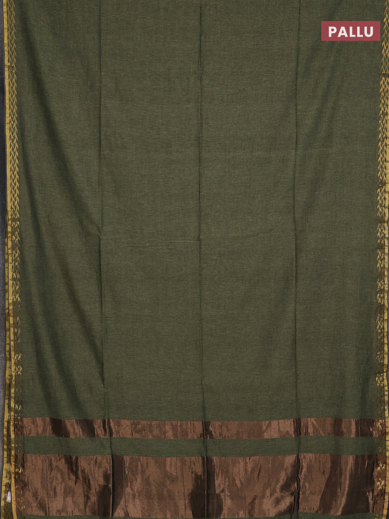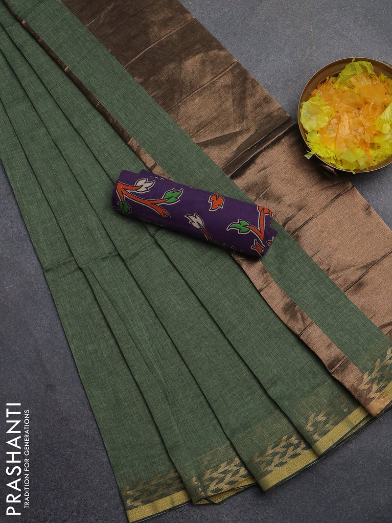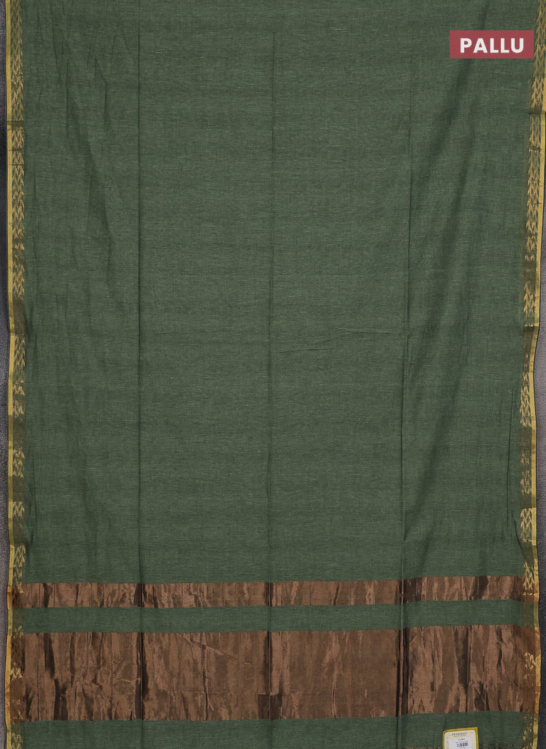 Bengal soft cotton saree navy blue and mehendi green with plain body and zari woven border