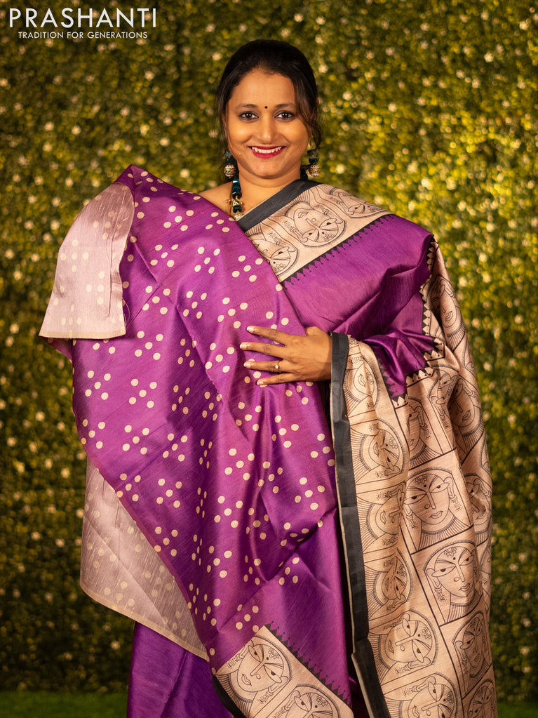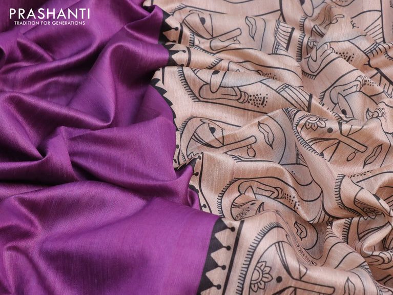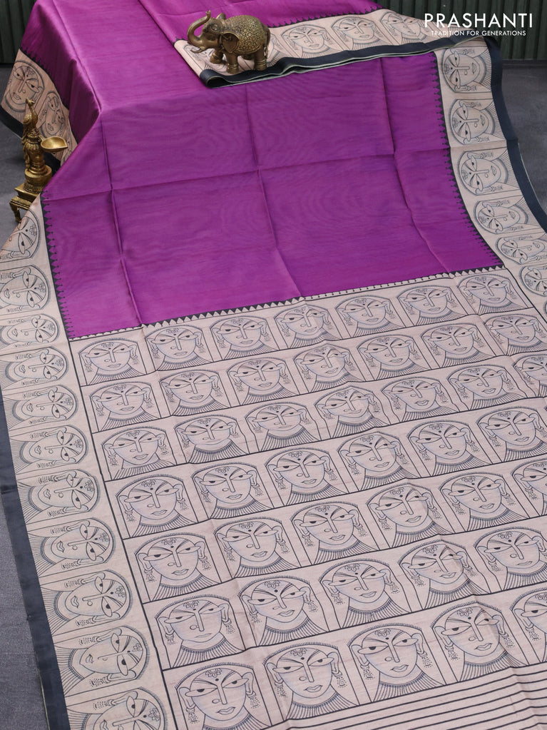 Chappa saree teal blue and cream with plain body and madhubani printed border