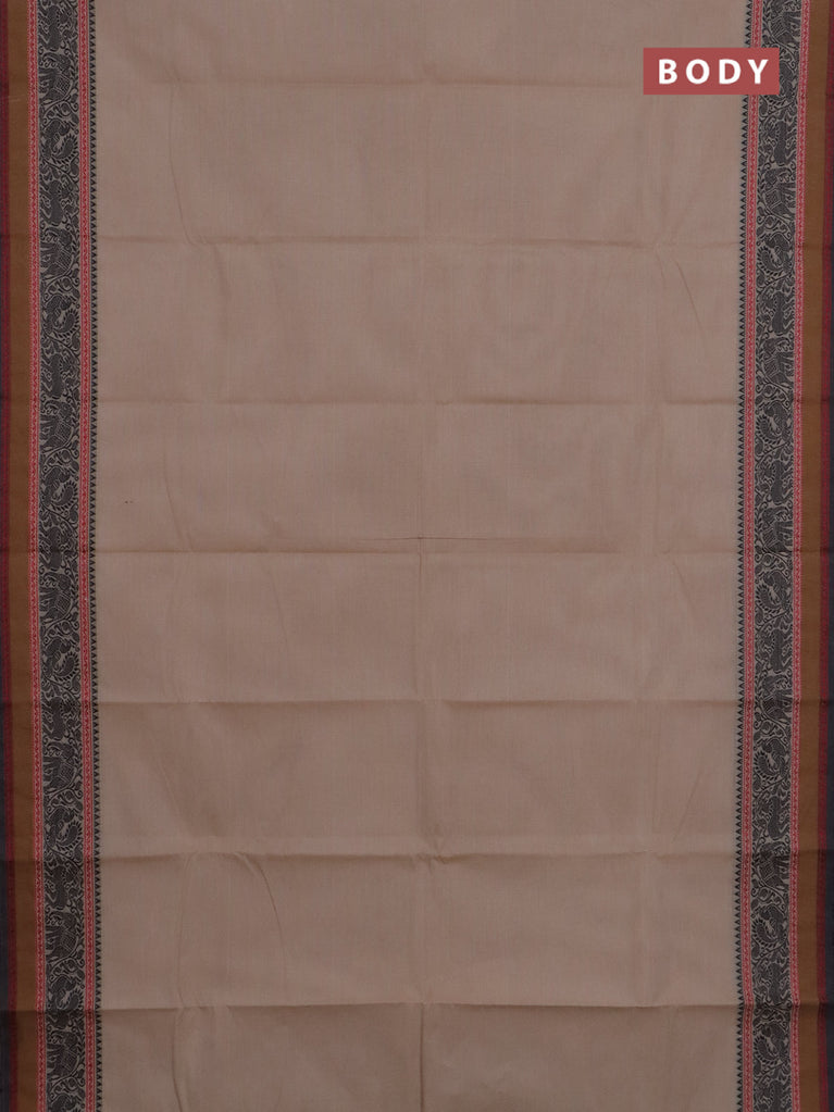 Chettinad cotton saree beige and maroon with thread woven buttas and temple disign zari woven border