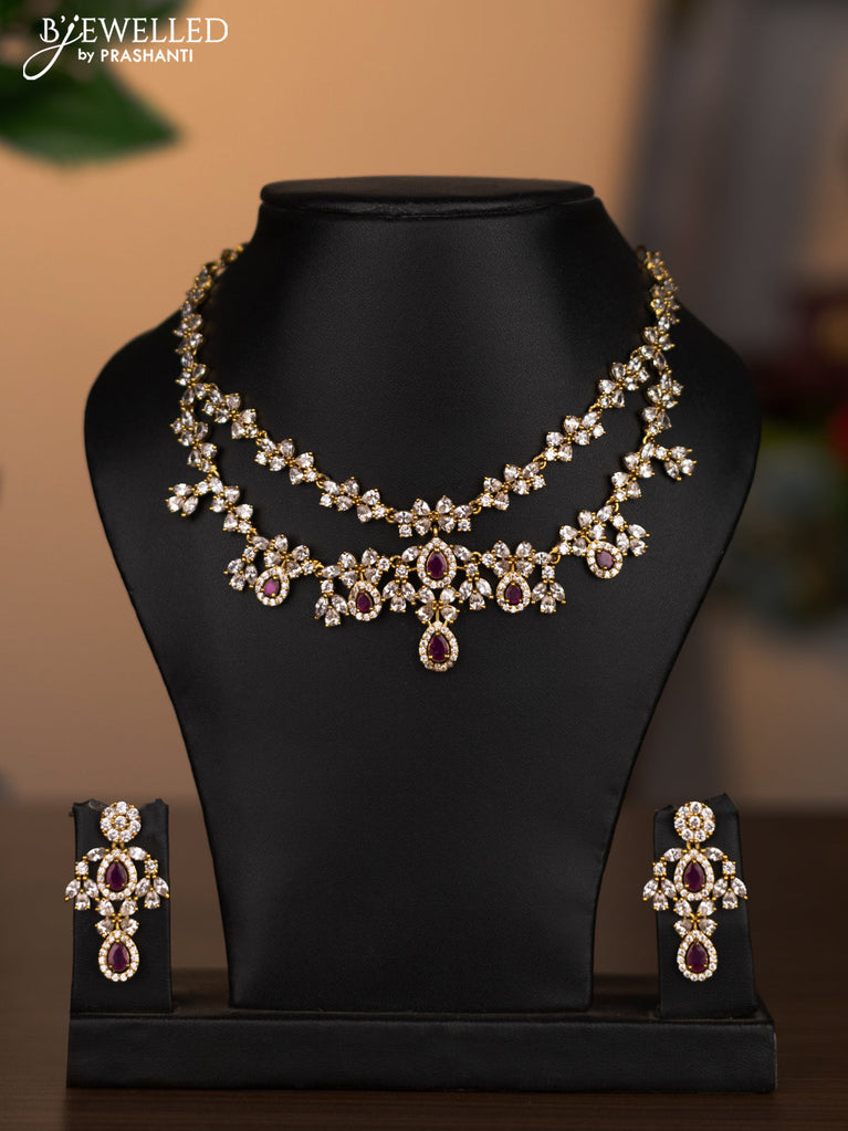 Antique double layer necklace lakshmi design with kemp stones and pearl hangings