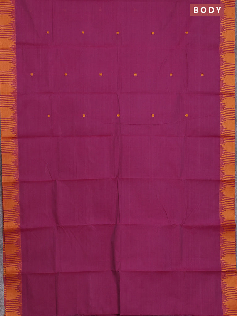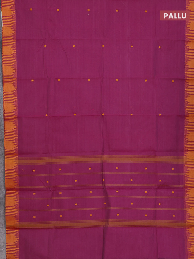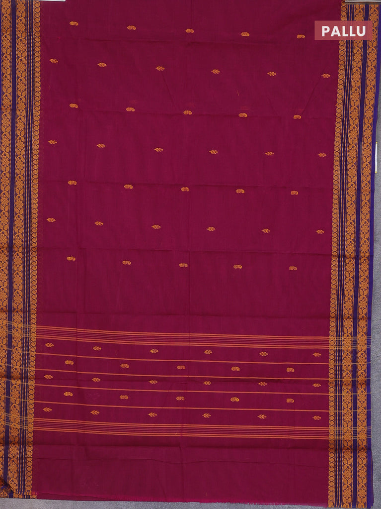 Chettinad cotton saree magenta pink and dark violet with thread woven buttas and temple disign zari woven border