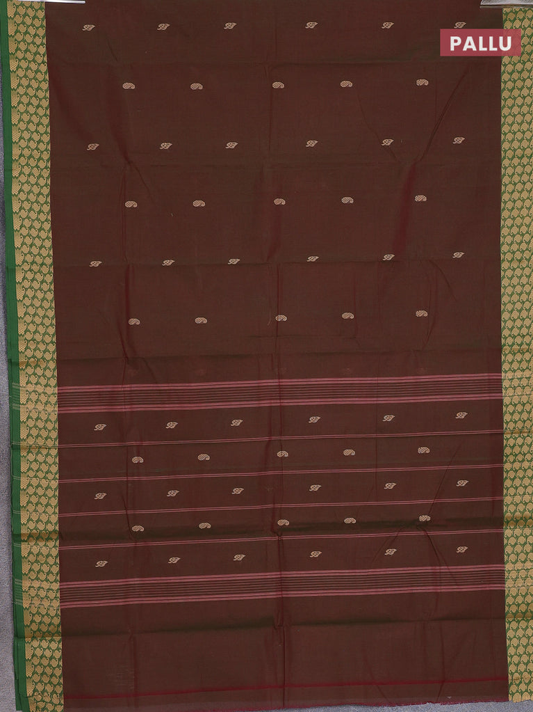 Chettinad cotton saree manthulir green and green with thread woven buttas and zari woven border