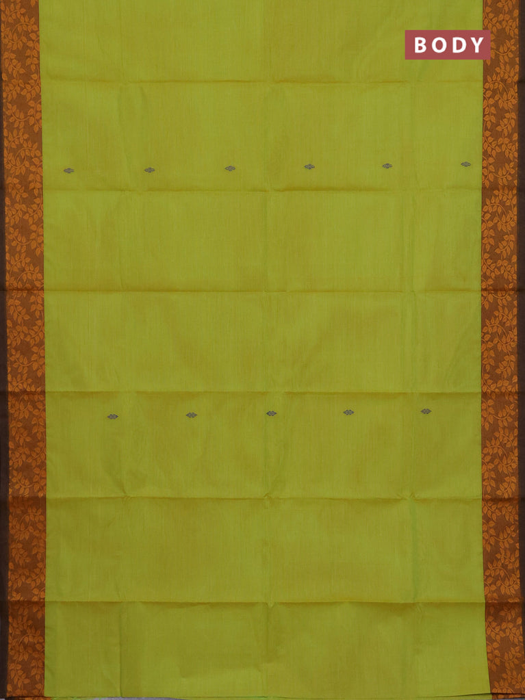 Chettinad cotton saree lime green and brown with plain body and leaf design border