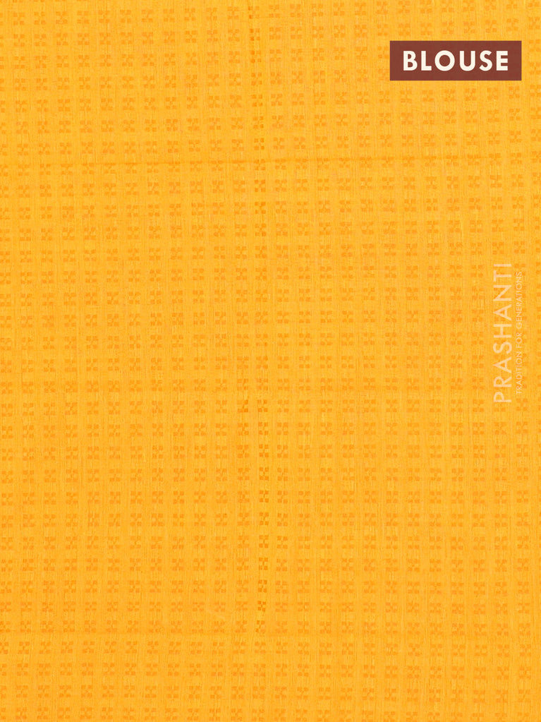 Chettinad cotton saree mango yellow and brown with allover block prints and thread woven border