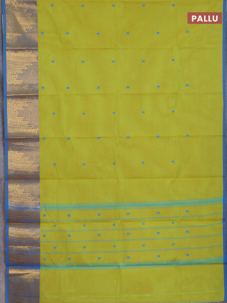 Chettinad cotton saree lime green and cs blue with thread woven buttas and thread & zari woven border