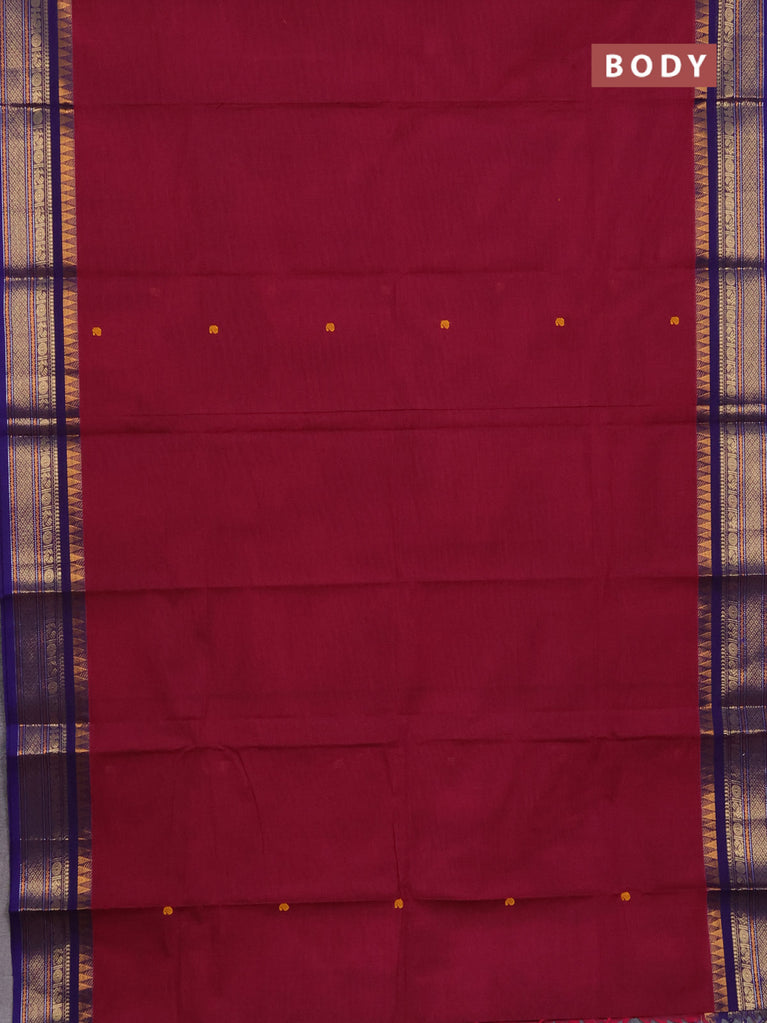 Chettinad cotton saree magenta pink and blue with thread woven buttas and thread woven border