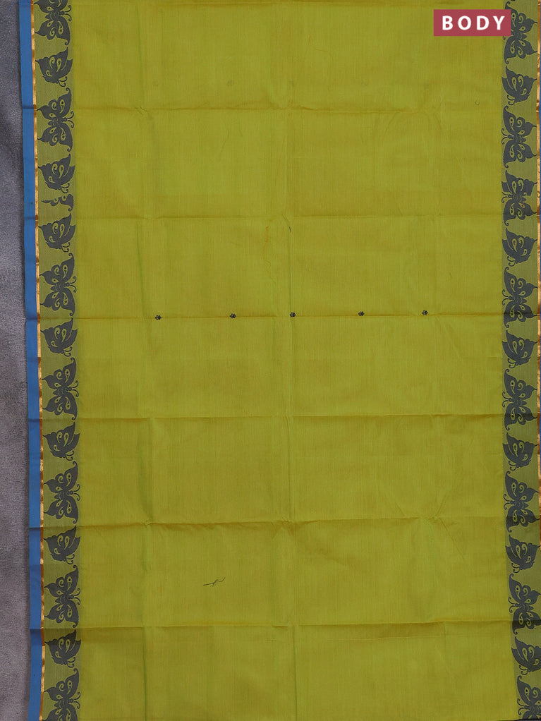Chettinad cotton saree lime yellow and green with thread woven buttas and thread & zari woven border