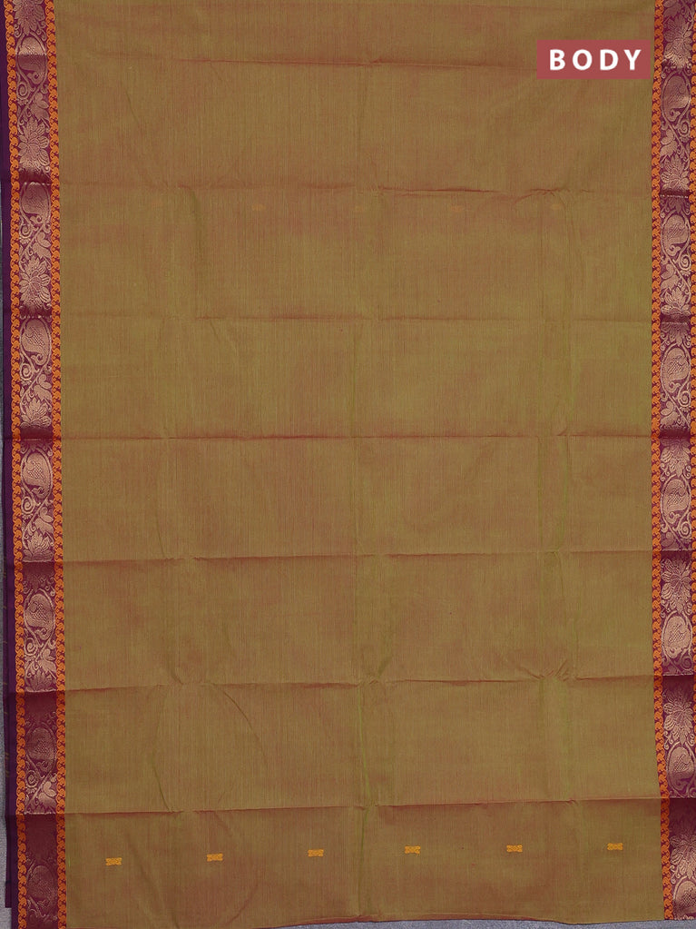 Chettinad cotton saree manthulir green and mango yellow with thread woven buttas and thread & zari woven border