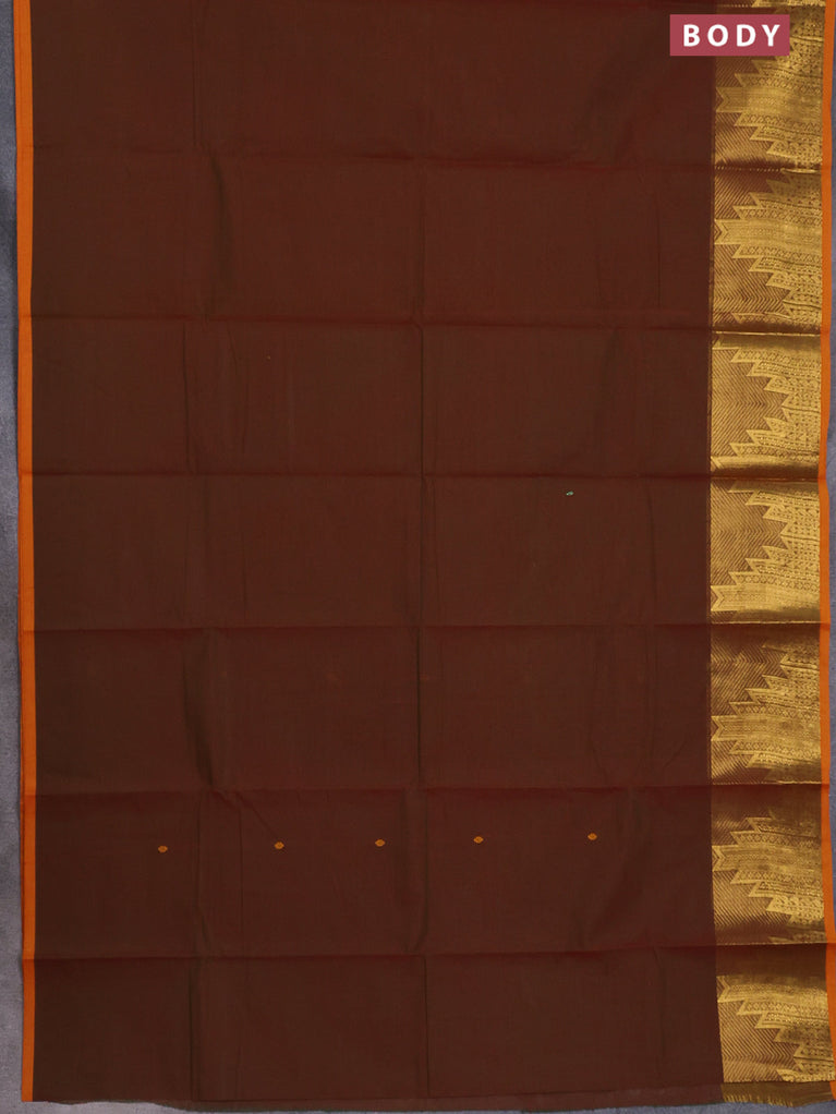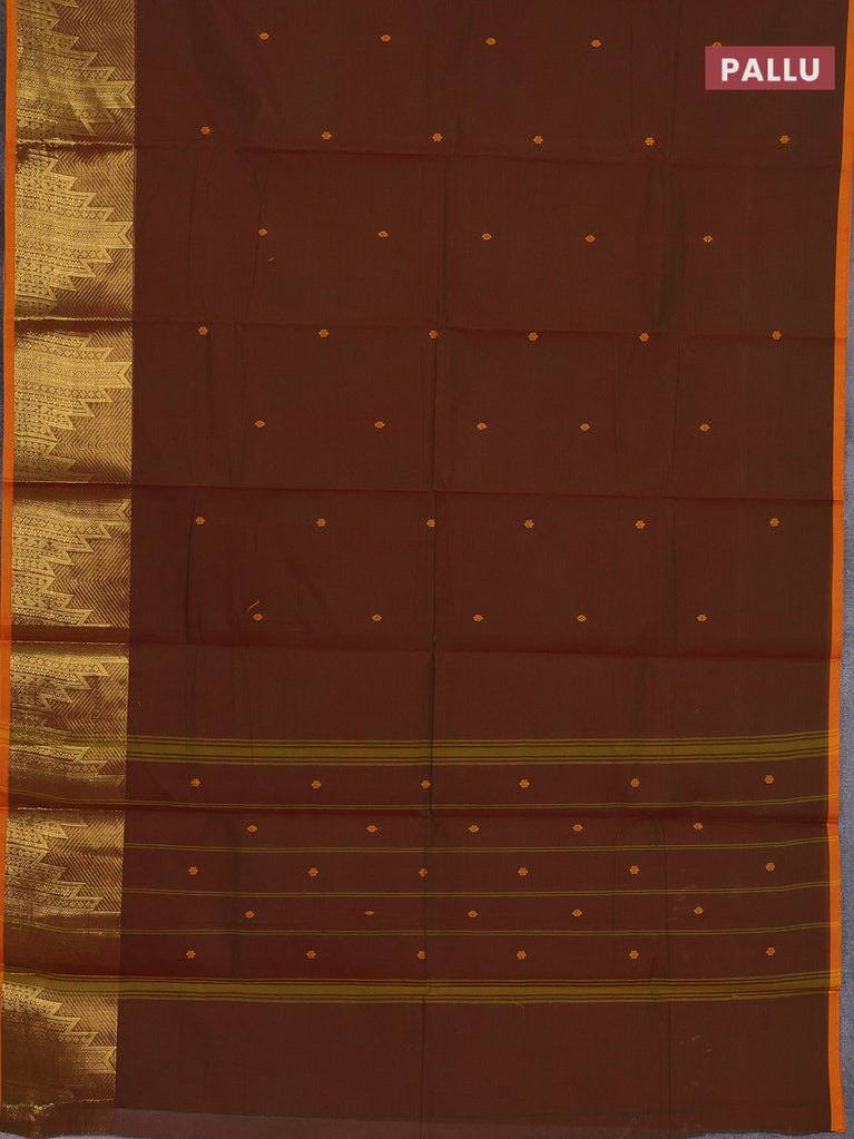 Chettinad cotton saree maroon and orange with thread woven buttas and temple thread woven simple border