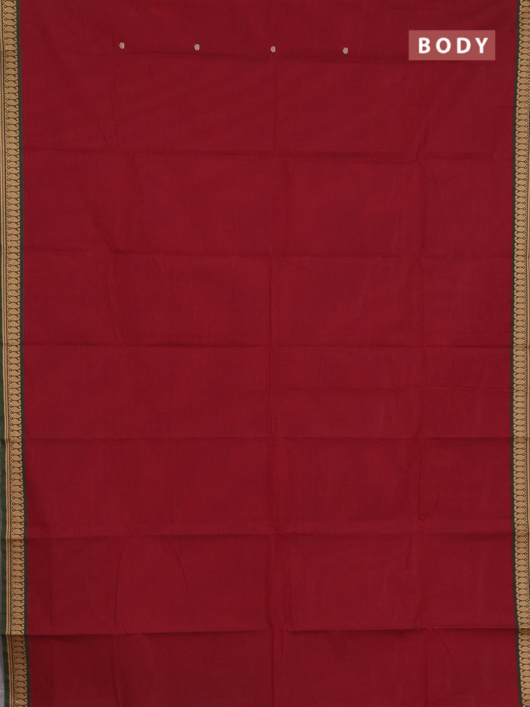 Chettinad cotton saree maroon and sap green with plain body and zari woven border