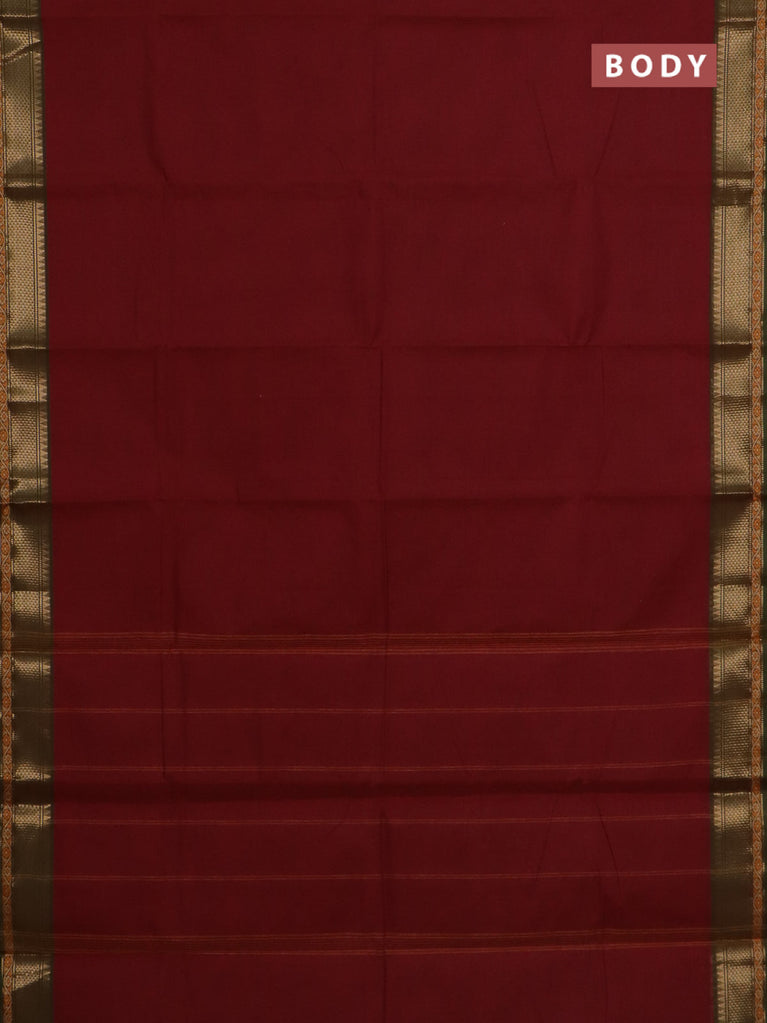 Chettinad cotton saree maroon and dark mustard with plain body and rettapet zari woven border