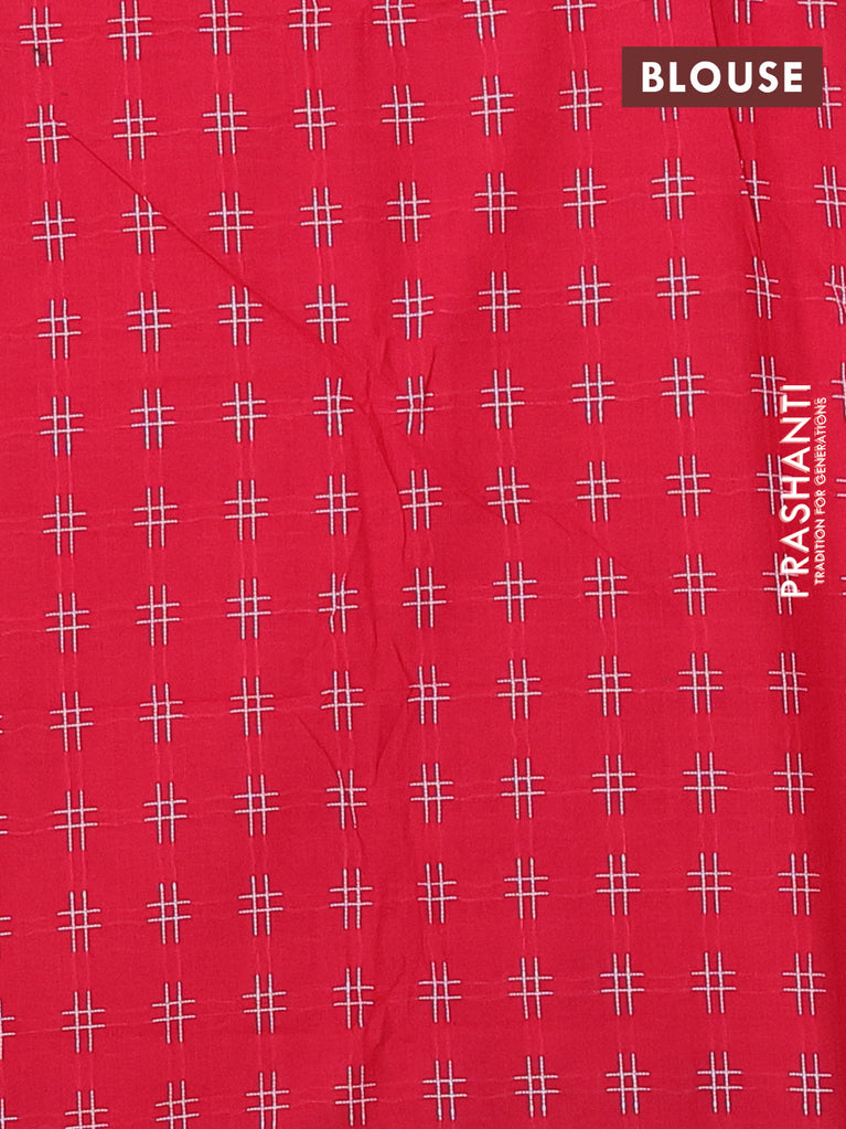Chettinad cotton saree manthulir green and red with allover checked pattern and zari woven border