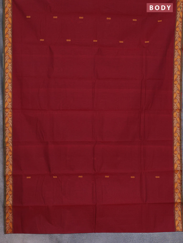 Chettinad cotton saree maroon shade with thread woven buttas and thread woven border