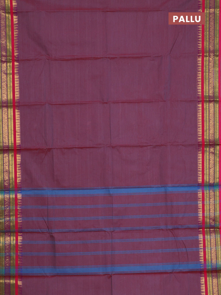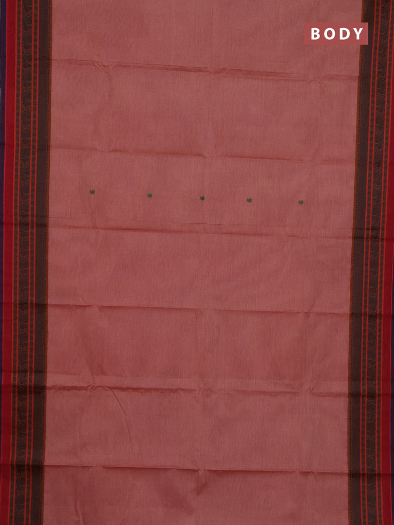 Chettinad cotton saree mauve pink shade and blue with thread woven buttas and zari woven simple border