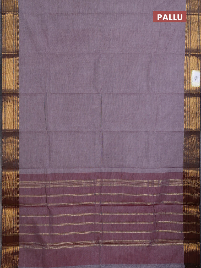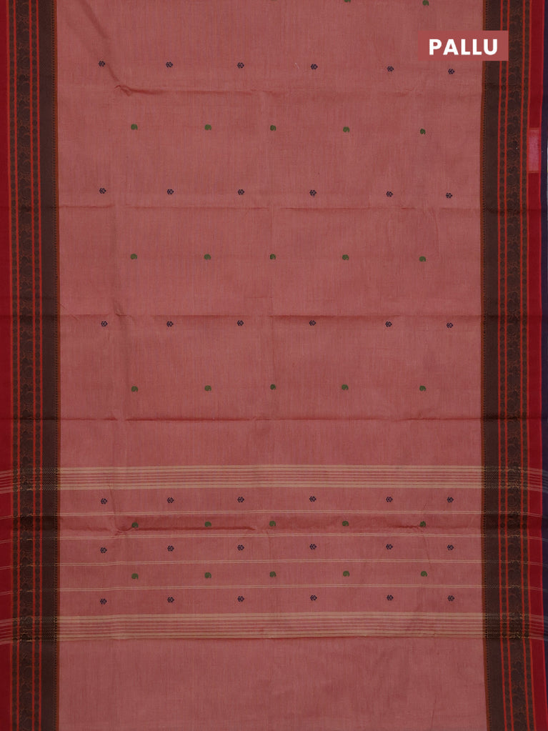 Chettinad cotton saree mauve pink and deep coffee brown with thread woven buttas and zari woven border