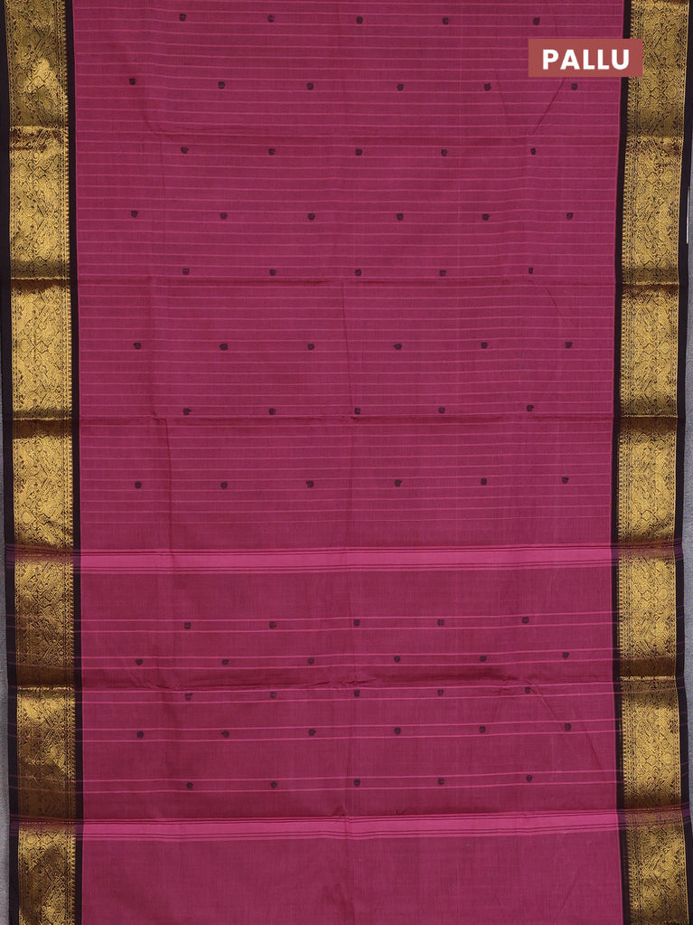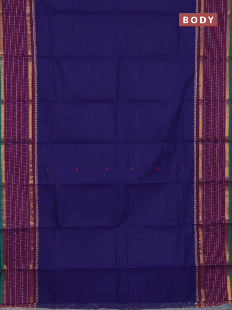 Chettinad cotton saree navy blue and dark magenta pink with thread woven buttas and zari woven border