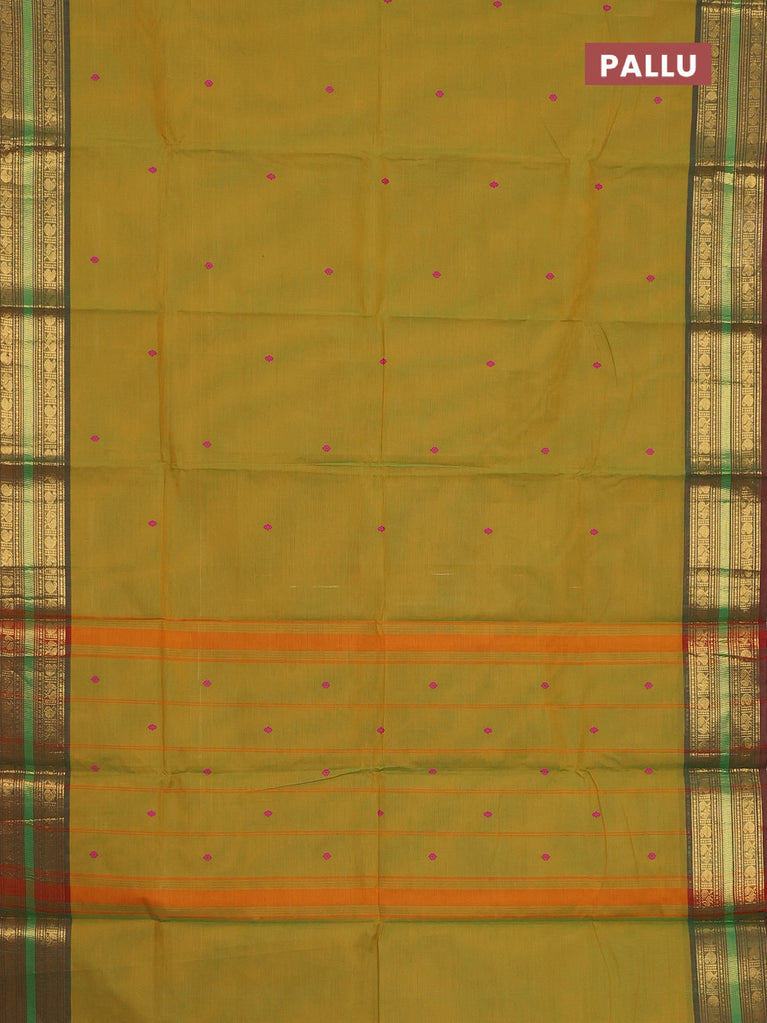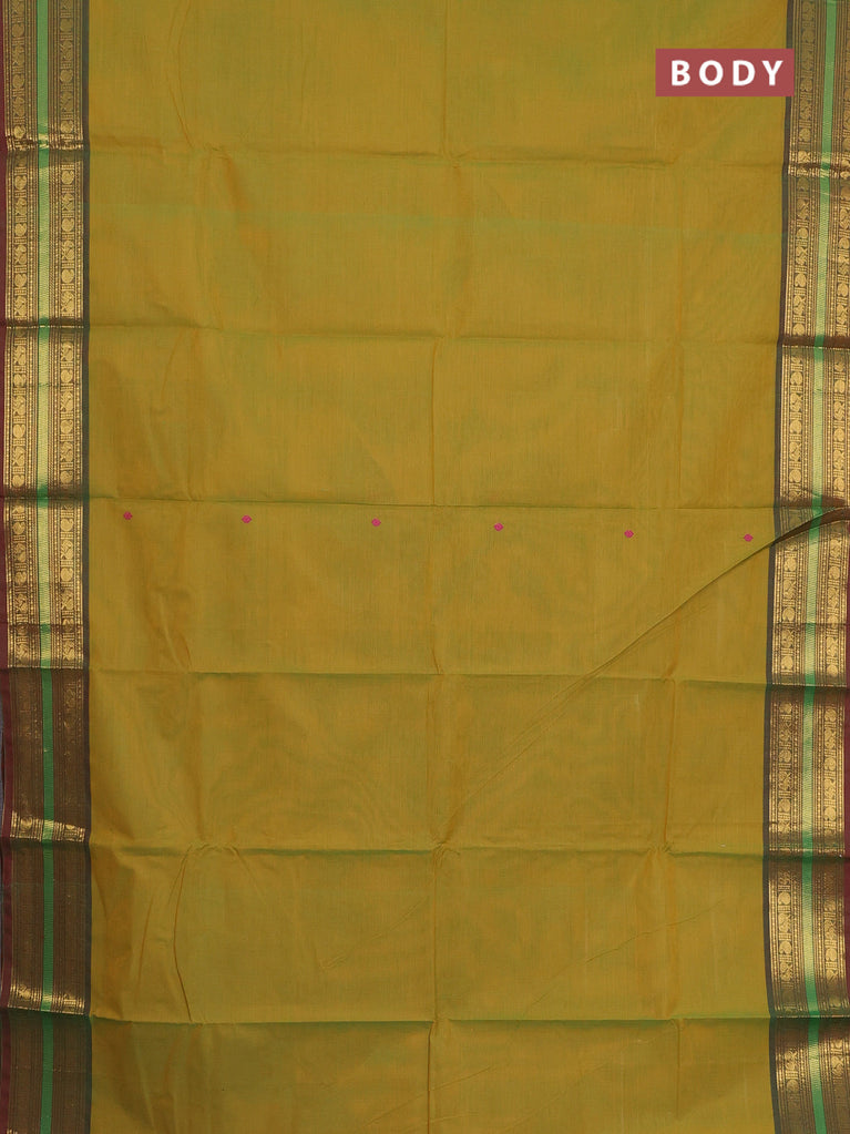 Chettinad cotton saree mustard green and dual shade of maroon with thread woven buttas and zari woven border