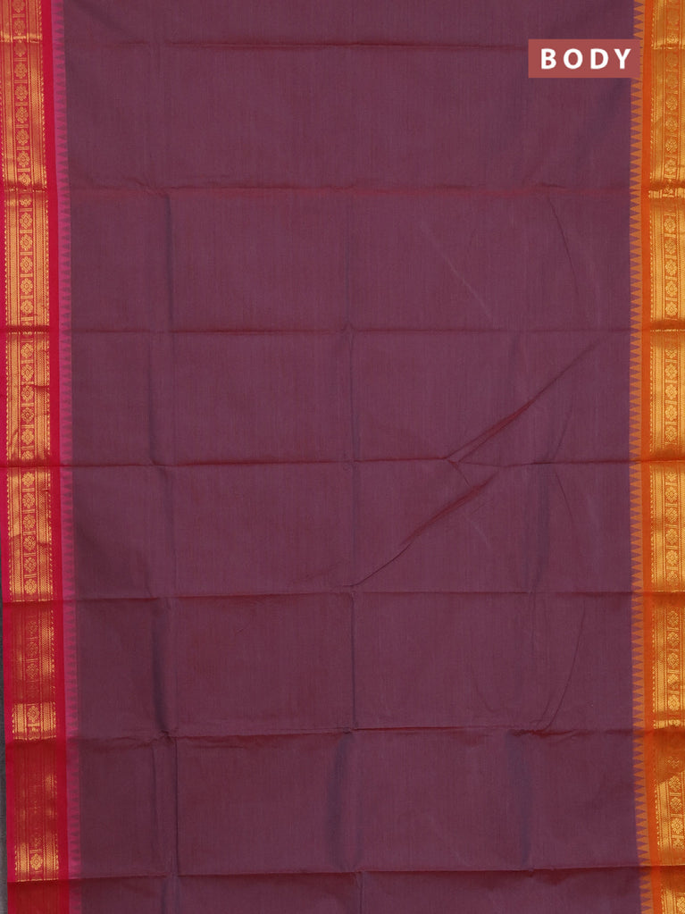 Chettinad cotton saree maroon and sunset orange with thread woven buttas and temple design simple border