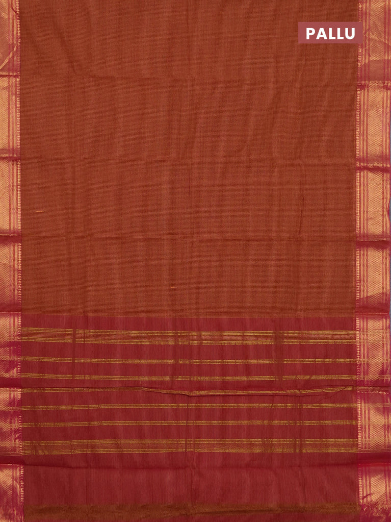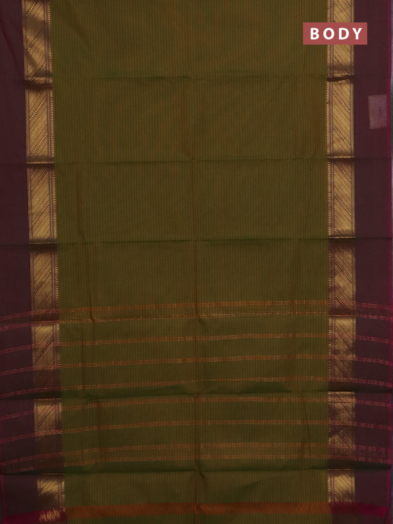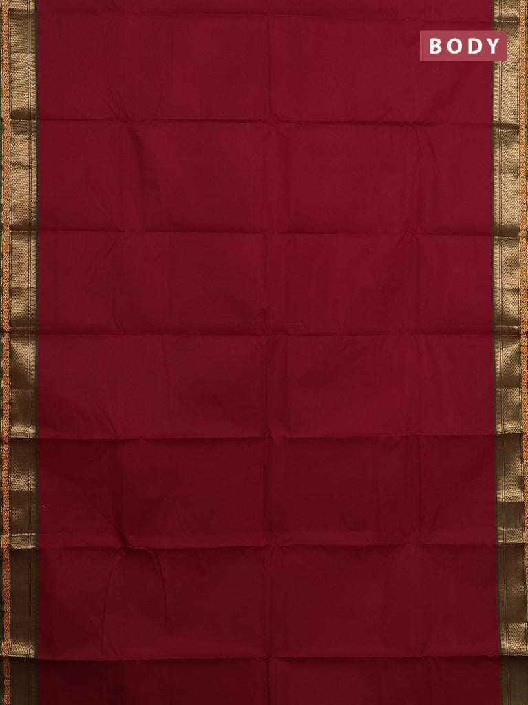 Chettinad cotton saree maroon and sap green with plain body and zari woven border