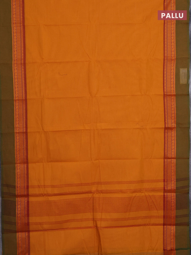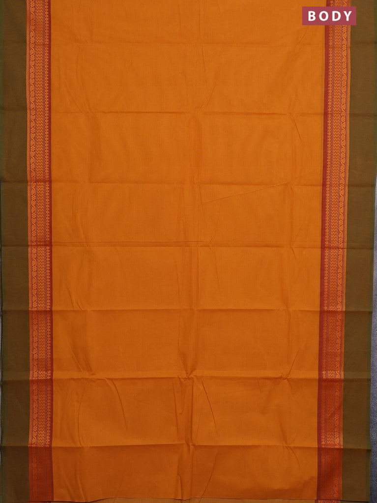 Chettinad cotton saree mustard yellow and mustard green with plain body and thread woven simple border