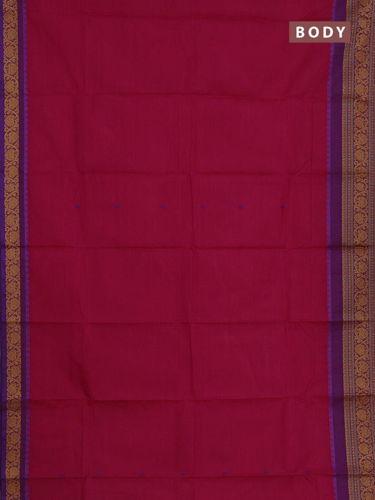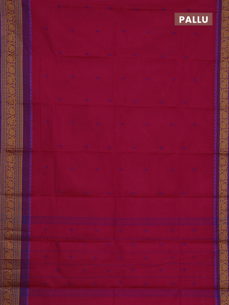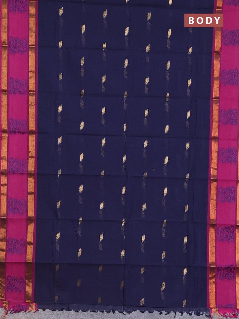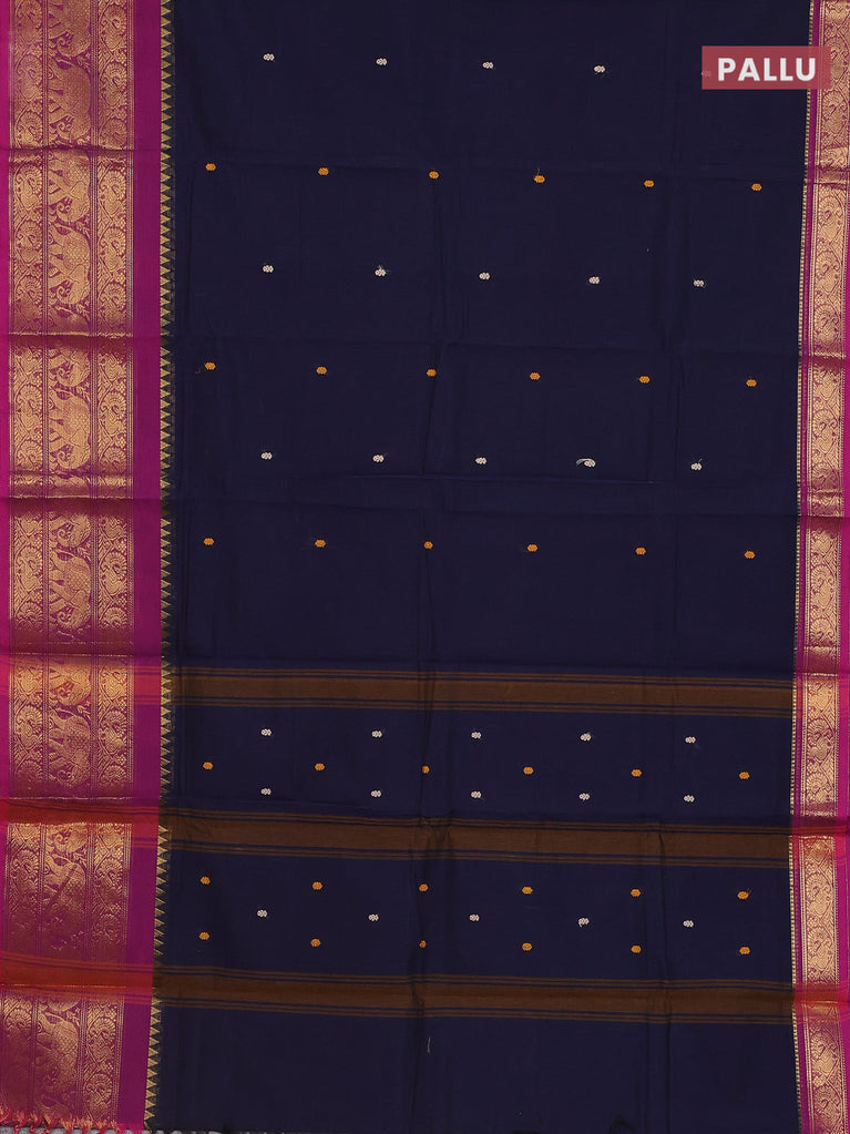 Chettinad cotton saree navy blue and magenta pink with thread woven buttas and rattapet zari woven border