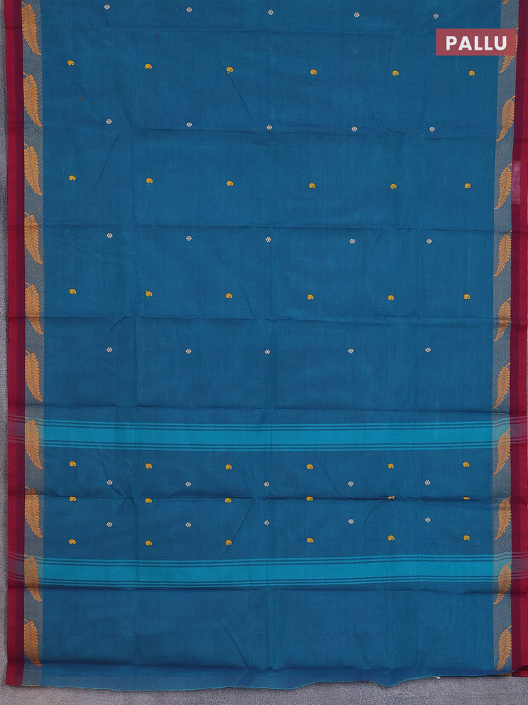 Chettinad cotton saree navy blue and maroon with thread woven buttas and zari woven border