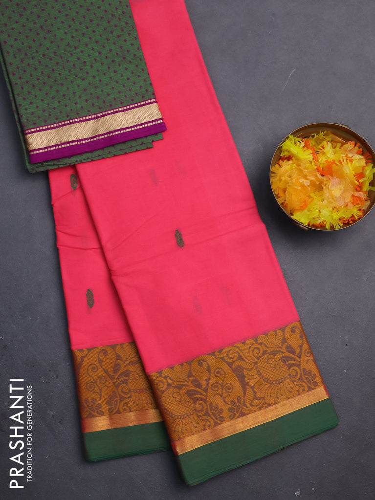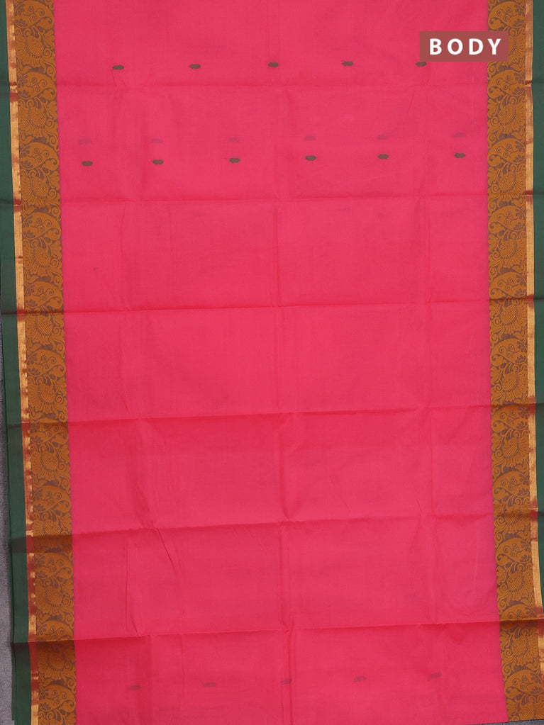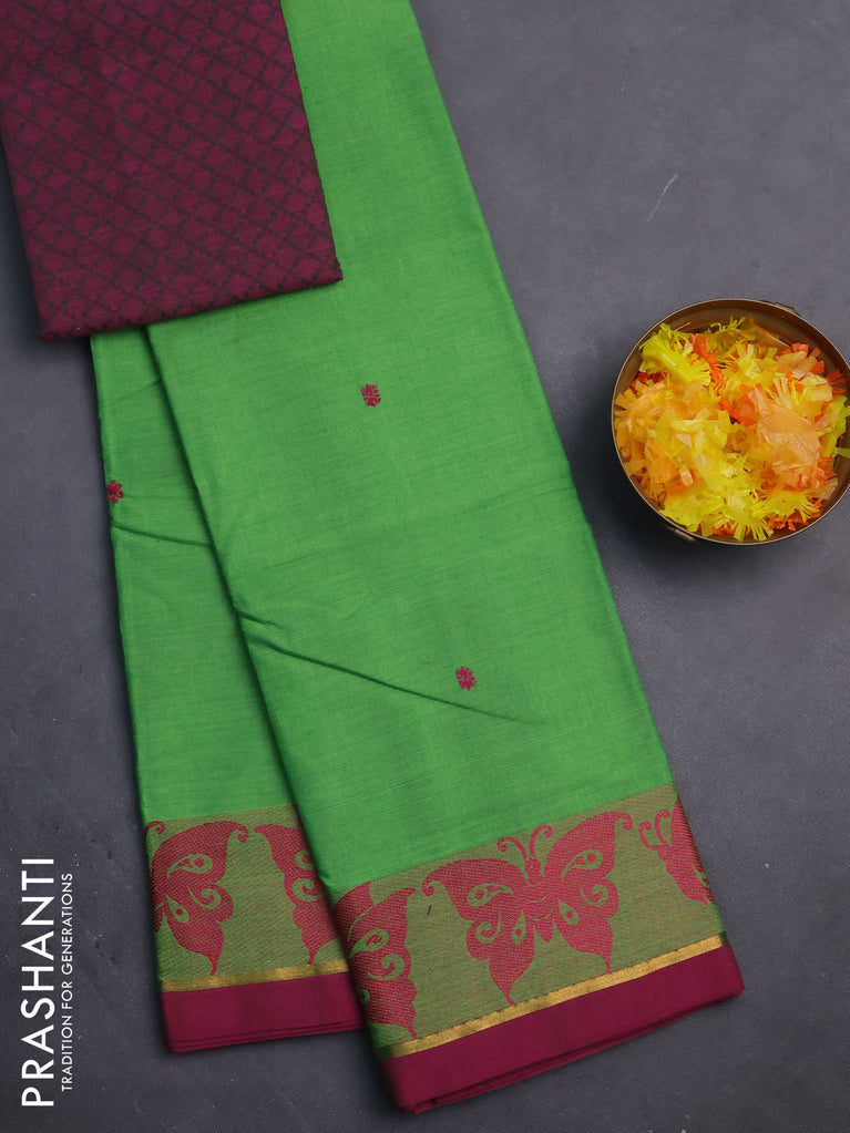 Chettinad cotton saree parrot green and magenta pink with thread woven buttas and thread & zari woven border