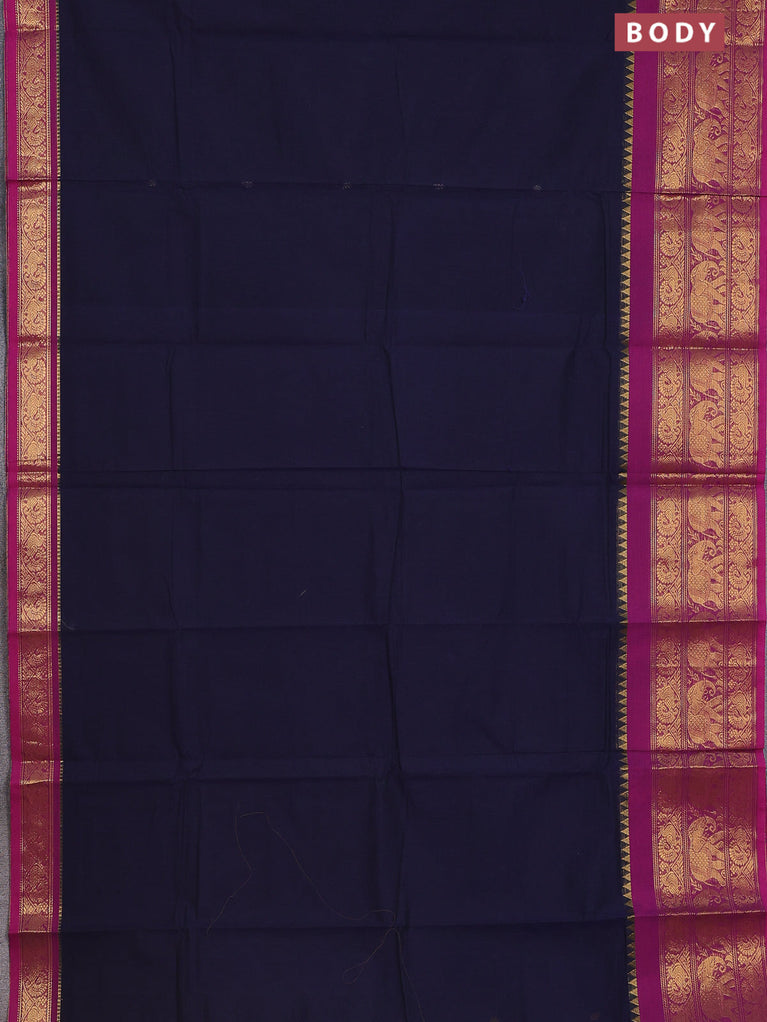 Chettinad cotton saree navy blue and magenta pink with thread woven buttas and annam & elephant zari woven border